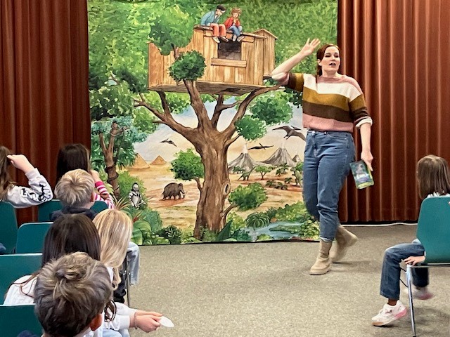 Mit großem Einsatz und schauspielerischem Talent las Laura Mann allen Schülerinnen und Schülern aus der erfolgreichen Buchreihe „Das magische Baumhaus“ vor. Es gelang ihr, die Geschichten lebendig zu gestalten und so die Kinder in ihren Bann zu ziehen. Ein großes Dankeschön geht wieder einmal an unseren Förderverein, der die Kosten für diese unvergessliche Autorenlesung übernommen hat.