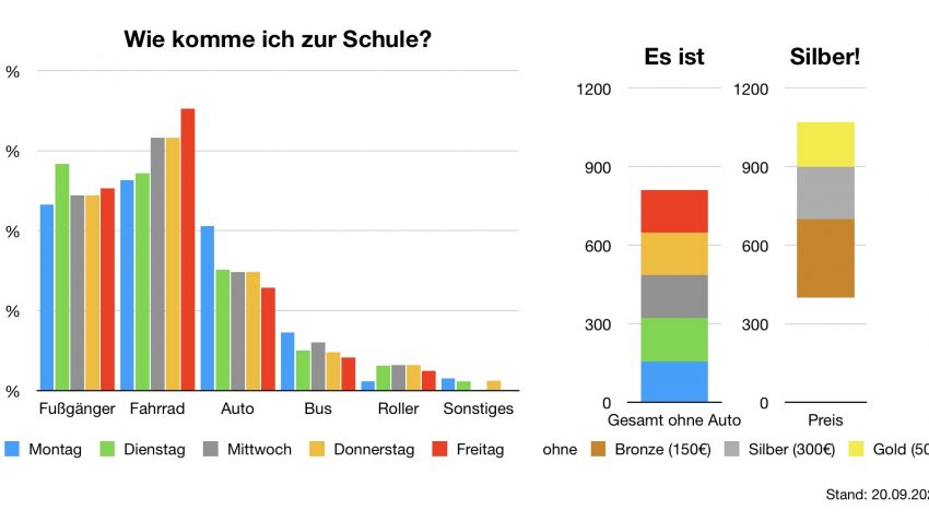 Leider hatten wir in der Woche teilweise sehr schwierige Witterungsbedingungen. Dennoch kamen viele Schülerinnen und Schüler (knapp 80 Prozent) nicht mit dem Auto zur Schule. Hierdurch haben wir den Silberrang erreicht und bekommen 300€ für den Schulverein. Ein toller Erfolg! Dieses Geld kommt über verschiedene Projekte wieder den Schülerinnen und Schülern zu Gute.
