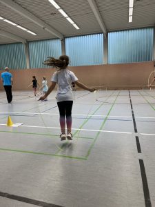 Aber wir haben auch Partnerspringen gemacht. Außerdem haben wir auch Seilüberspringen gemacht.