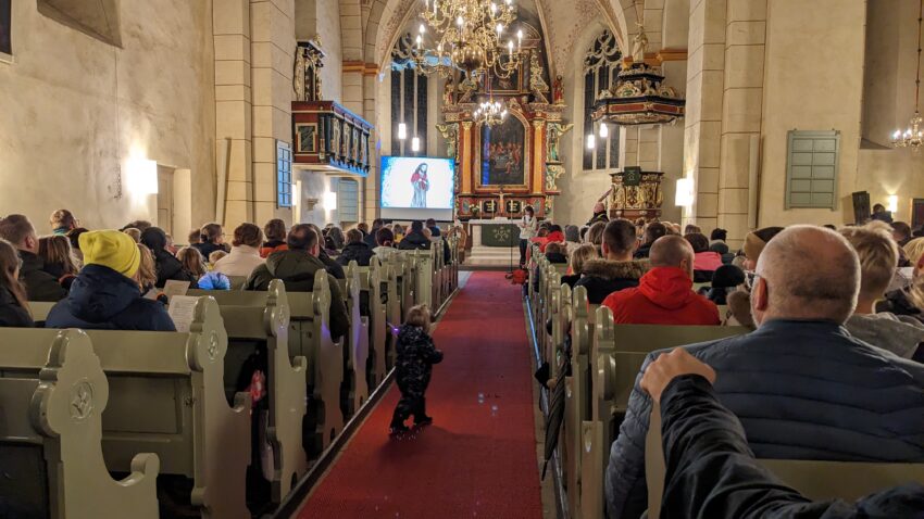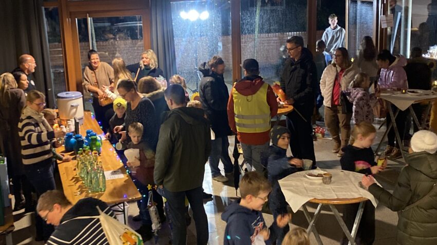 Regenwetter kann unsere Laune nicht verderben! Wir verlegten kurzerhand unser Fest in die Aula und stellten fest, dass es ganz schön gemütlich war. Gestartet wurde mit einer kurzen Andacht in der Ev. St. Martin-Kirche (Kann es einen passenderen Ort für dieses Fest geben?) und dann wanderten wir mit farbenfrohen Laternen und musikalischer Unterstützung singend Richtung Martinusschule. Dort zierten viele Martinsgänse die beleuchteten Fenster und viele, helfende Elternhände hatten schon die Aula mit Lichtern und Deko geschmückt. Der Förderverein unterstützte uns mit Getränken und die katholische Jugend mit Würstchen und Grillkäse. Einzig die fortgeschrittene Uhrzeit beendete letztendlich das Fest..denn so richtig wollte noch niemand nach Hause!