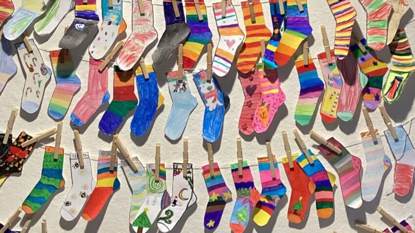 …mit diesem Spruch, der, zusammen mit vielen bunt gestalteten Socken, in unserem Eingangsbereich hängt, möchten wir allen ein frohes, neues, kunterbuntes und farbenfrohes, cooles Jahr 2026 wünschen!