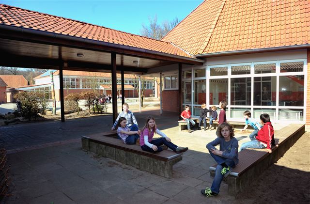 … Werkraum, Leseraum, Computerraum, Ruhepausenraum, Musik- und Bewegungsraum, der Sporthalle, in der Küche, Textilraum, Spieleschuppen mit seinen Pausengeräten, im Freien auf unserem vielseitigen Schulgelände, der Gemeindebücherei und, und, und … .
