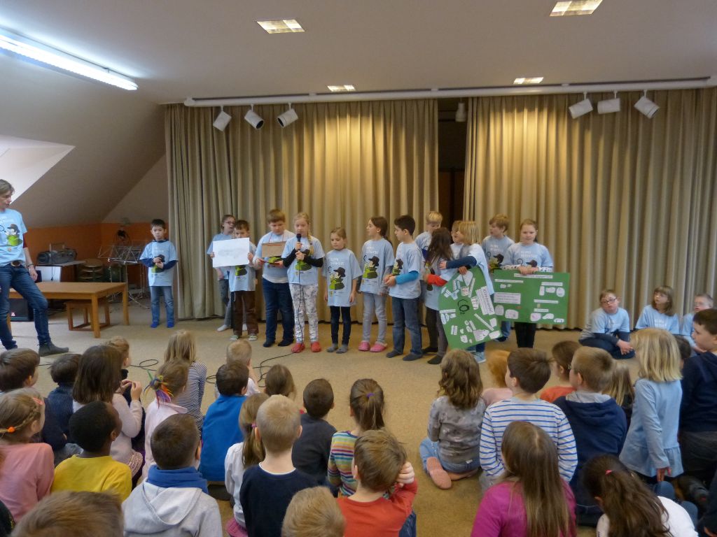 Die Klassen 3b und 3c beschäftigen sich zur Zeit mit den Themen Klimawandel und Nachhaltigkeit. Eine Aktion dazu gab es am Montag, den 20. März 2017. Die Klassen hatten Kartoffelpuffer aus Barnstedter Kartoffeln (Dankeschön, Familie Schröder!) mit Apfelmus aus heimischen Kellern für die ganze Schule gebacken. Sie wollten damit auf klimafreundliches Verhalten hinweisen und hatten den Schwerpunkt „Konsumieren regionaler Produkte“ für diesen Tag gewählt.