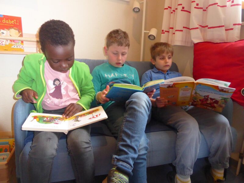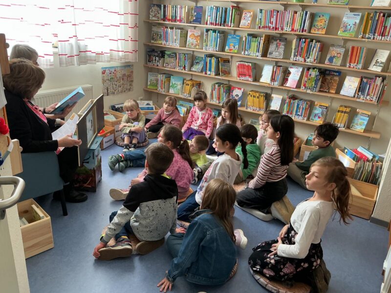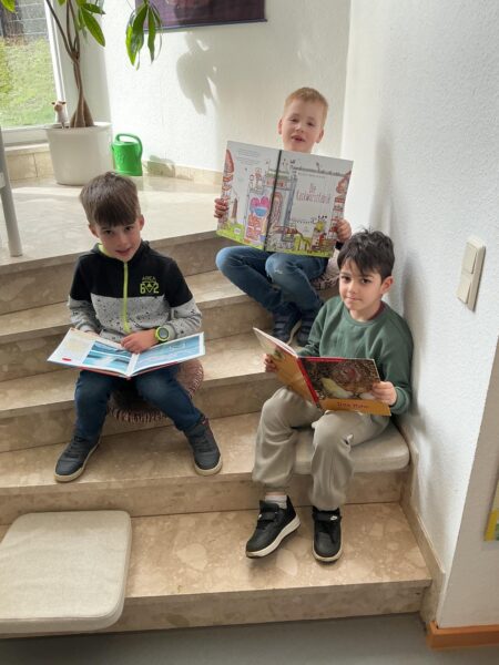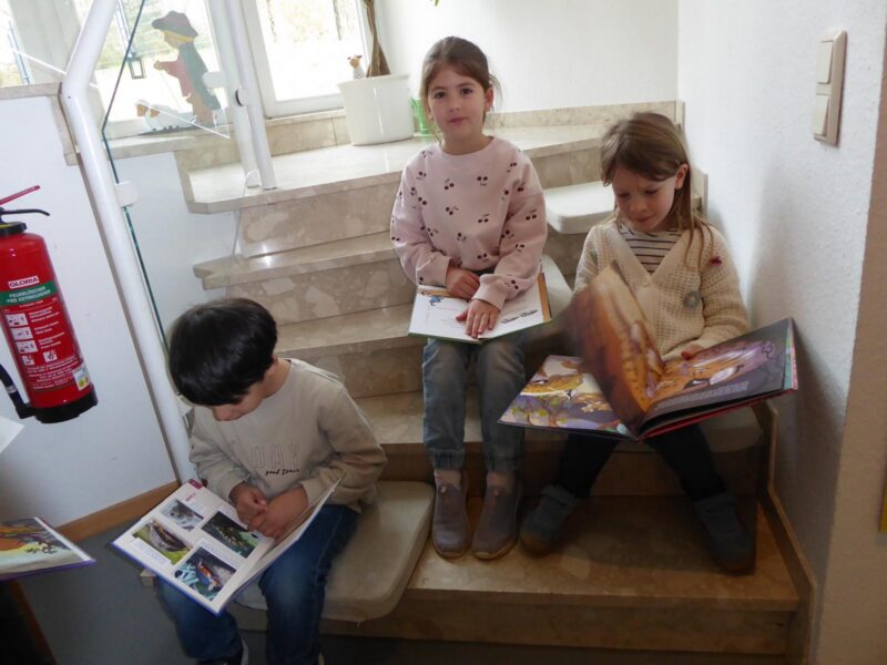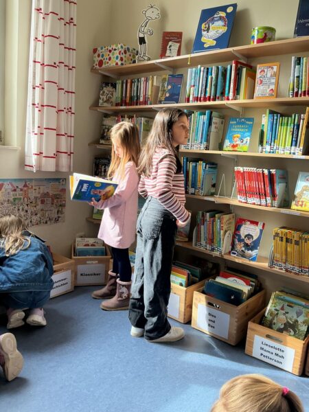 Dabei haben wir den Büchereiraum mit den über 1000 Büchern kennengelernt. Wir durften gemeinsam stöbern, uns Bücher anschauen und darin lesen. Manche Kinder haben sich sogar ein Buch ausgeliehen.