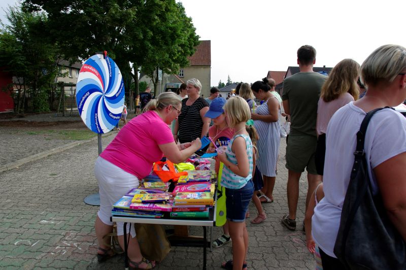 Bei strahlendem Sonnenschein konnten die Grundschüler mit Freunden und Familie einen tollen Nachmittag mit Zauberershows, Hüpfburgen, Dosenwerfen, Schatzsuche und vielen anderen Attraktionen erleben. Die große Hitze war dank Slushy-Eis, Zuckerwatte und Eis für alle Kinder gut zu überstehen. Außerdem gab es leckere Würstchen vom Grill und kühle Getränke.