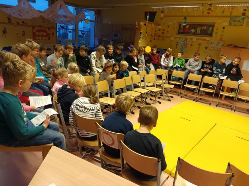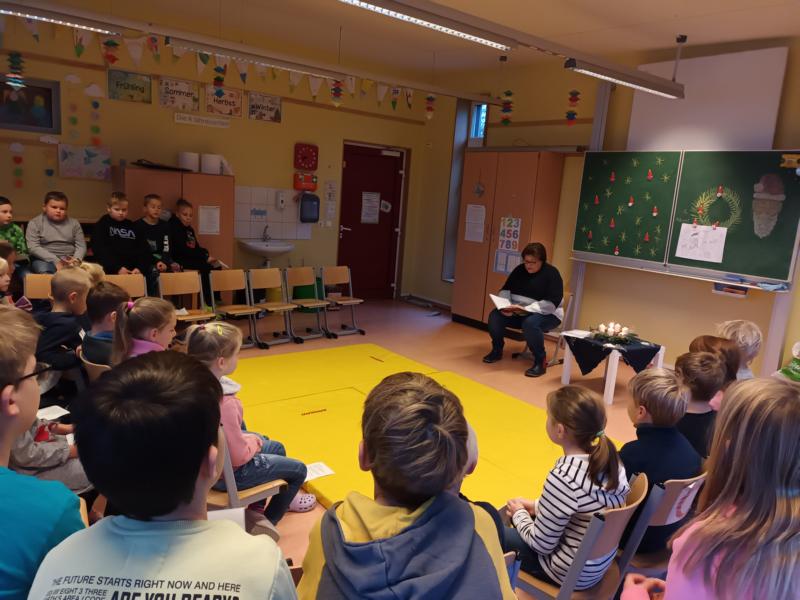 Traditionell trafen sich alle Kinder und Lehrkräfte der Grundschule im Ganztagsraum zum sogenannten “Adventsmontag”. Dort wurden zur Einstimmung auf die Weihnachtszeit Lieder gesungen und Frau Hölscher las den Kindern eine Weihnachtsgeschichte vor. Wir freuen uns sehr auf den nächsten Montag und sind gespannt, welche Geschichte uns dann erwartet.
