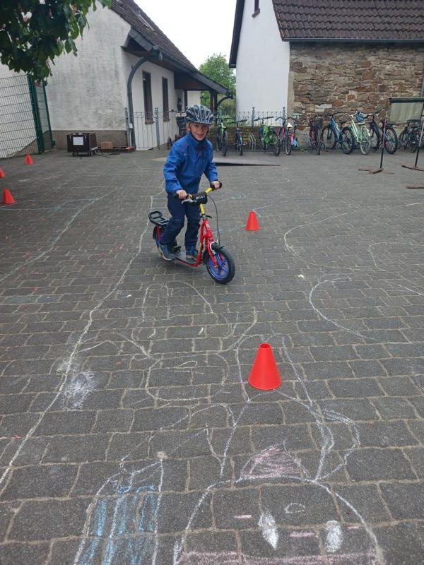 Bremsen, Slalom fahren, Hindernisse überqueren und das richtige Abstellen und Tragen eines Rollers wurde wieder fleißig auf dem Schulhof von den Erstklässlern geübt. Am Mittwoch legten die Kinder dann ihre Rollerprüfung ab – alle haben bestanden. Herzlichen Glückwunsch!!!