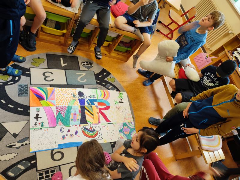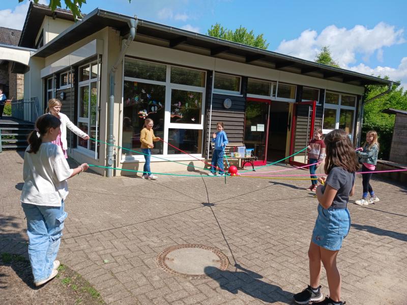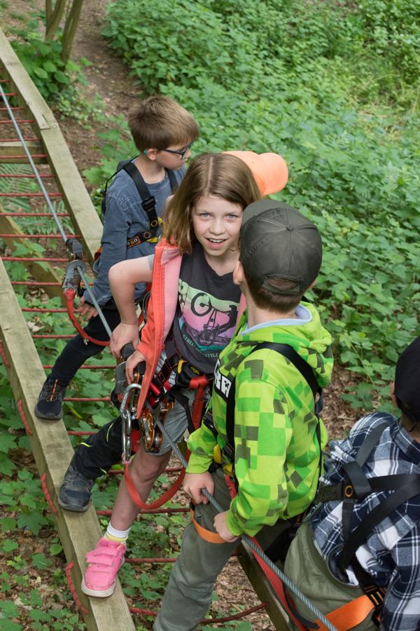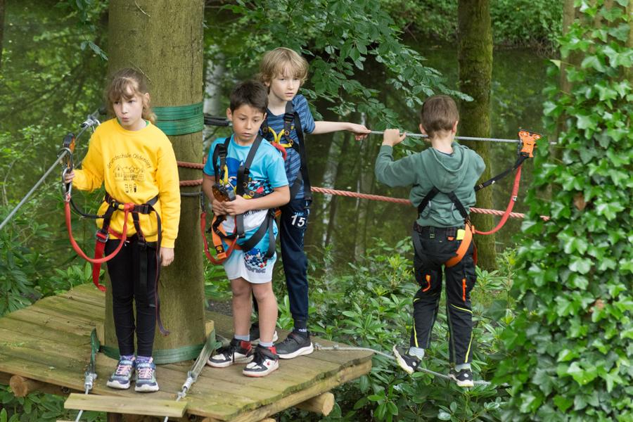 In diesem Jahr haben wir uns als Schule entschlossen die Projekttage “Ich-Du-Wir” durchzuführen, um die Gemeinschaft in den Klassen und in der Schule weiter zu stärken. Dazu gab es in der Schule an zwei Tagen verschiedene Angebote, die die Kinder klassenweise durchlaufen haben. Unter anderem gab es Kooperationsspiele in der Turnhalle, eine Gruppenschnitzeljagd zum Thema Harry Potter und das “Fliegende Ei”, wo die Kinder ein rohes Ei gemeinsam so einpacken mussten, dass es einen Sturz aus einer gewissen Höhe heile überstehen sollte. Außerdem gestalteten die Kinder gemeinsam als Klasse ein WIR-Plakat. Als Highlight fuhren wir in den Kletterwald nach Bad Iburg. Nachdem wir mit dem Bus angekommen waren, bekamen alle Kinder im Kletterwald einen Sicherheitsgurt und eine Einweisung, bevor sie die verschiedenen Kletterelemente bewältigen durften. Ein tolles Erlebnis. Man sah, wie die Kinder sich gegenseitig unterstützten, sich Tipps gaben und sich motivierten, damit alle die verschiedenen Parcours schafften. Eine tolle Bereicherung für die ganze Schule.