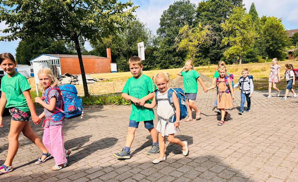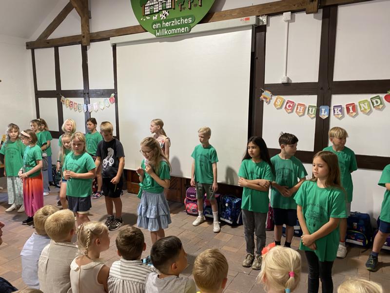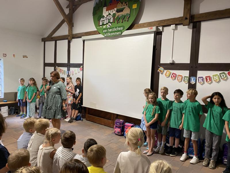 Am 10. August war der große Tag für unsere 17 Einschulungskinder in Oldendorf gekommen. Die Kinder kamen morgens voller Vorfreude zur Sägemühle, wo auch in diesem Jahr die Einschulungsfeier stattgefunden hat. Die Viertklässler präsentierten u.a. eingeübte Lieder und lasen das Buch “Mut Murmeln” vor. Die Erstklässler erhielten von ihren Paten sogar eine eigene Mutmurmel für die 1. Unterrichtsstunde bzw. die Schulzeit. Nachdem die Paten und die Klassenlehrerin Frau Kattner die Einschulungskinder zur Grundschule begleitet haben, hatten sie ihre erste Unterrichtsstunde. Während die Kinder im Unterricht waren, versorgte der Förderverein und die Eltern der Klasse 2 die Gäste mit Getränken und vielen kleinen Speisen. Vielen Dank für die gute Organisation und Unterstützung.