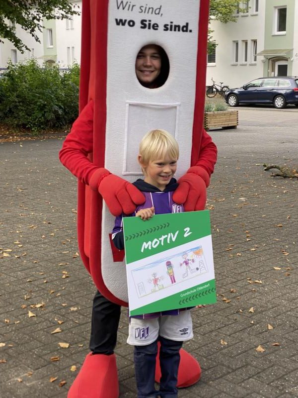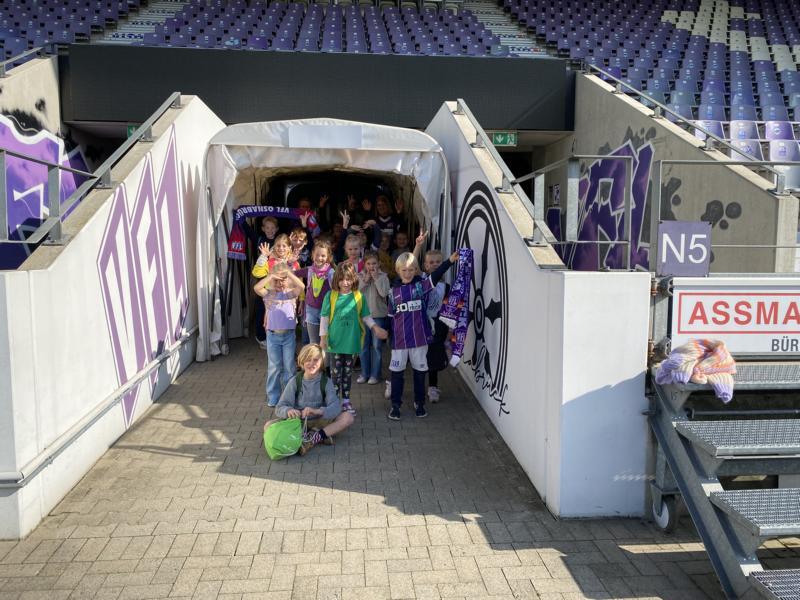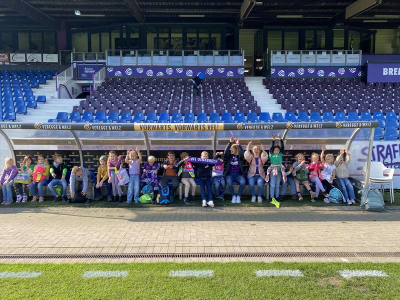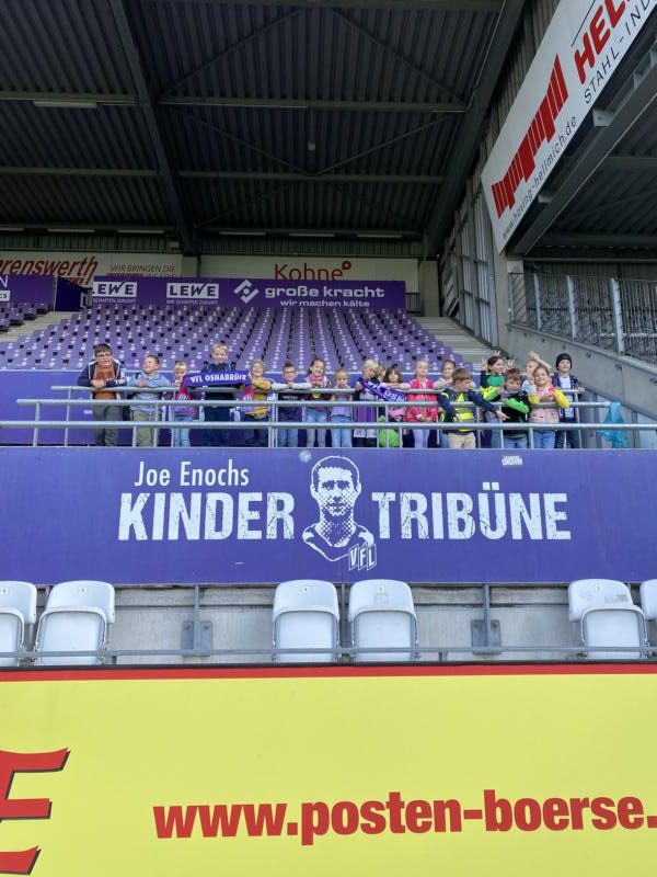 Beim I-Männchen Malwettbewerb der Verkehrsgemeinschaft Osnabrück in Kooperation mit dem VfL Osnabrück reichten die Kinder der Regenbogenklasse ihre selbstgemalten Bilder ein. Das Bild von einem Zweitklässler wurde ausgewählt und bei einer Onlineabstimmung mit 1000 Teilnehmern auf den 3. Platz gewählt. Als Gewinn erhielt die gesamte Klasse einen Stadionbesuch beim VfL. Am Montag, den 16.09.24 durften wir dann unseren Gewinn einlösen und bekamen im Stadion an der Bremer Brücke eine exklusive Stadionführung mit vielen tollen Highlights. Dieser besondere Ausflug wird uns allen noch lange in Erinnerung bleiben.