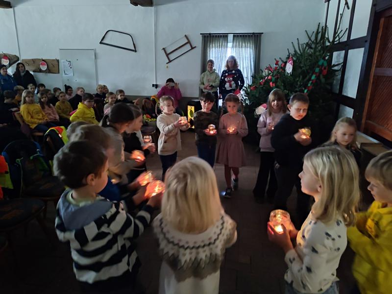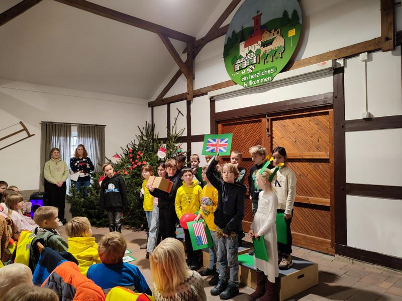 Die Weihnachtsfeier in der Grundschule war ein fröhliches Ereignis. Die Kinder haben Weihnachtslieder gesungen und kleine Vorträge gehalten, die sie ihren Mitschülern, Lehrern und Eltern gezeigt haben. Besonders schön war der Lichtertanz, bei dem alle Erstklässler ein Licht in der Hand gehalten haben.