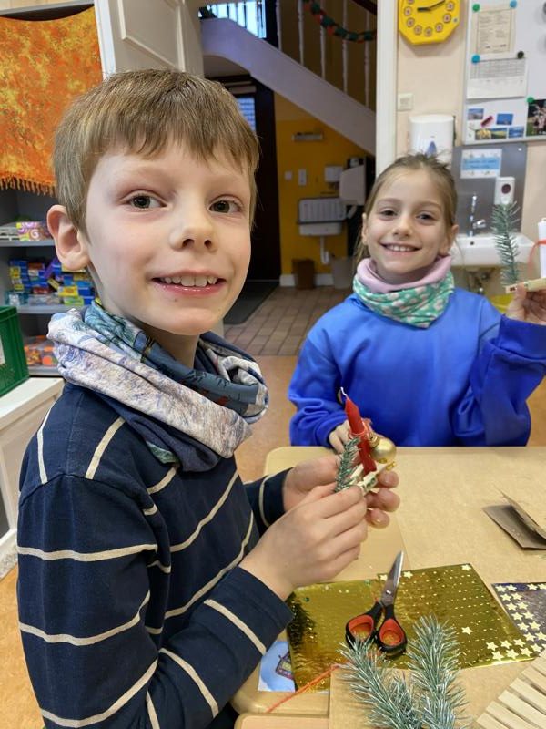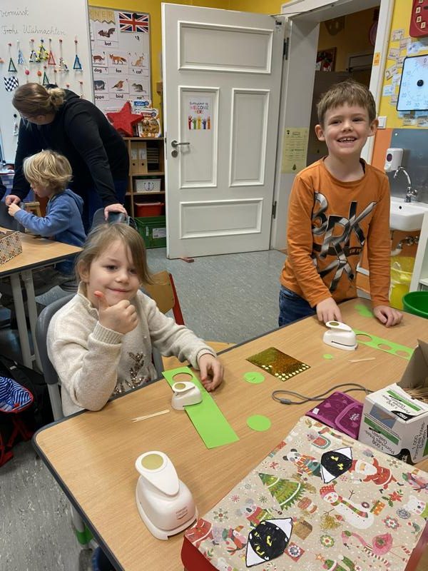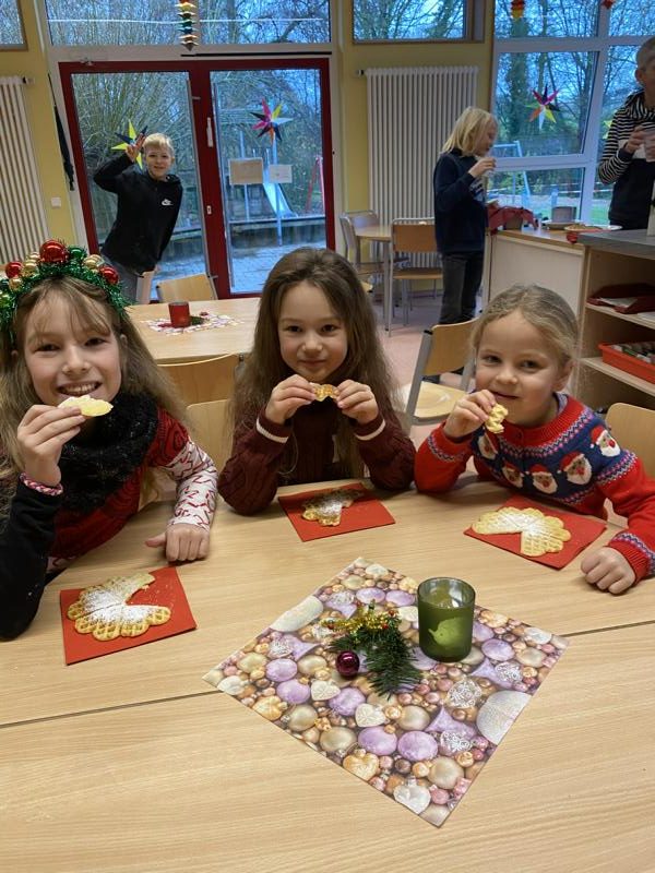 In der Vorweihnachtszeit wurde an der Grundschule fleißig gebastelt. Die Kinder gestalteten Weihnachtskarten, schmückten den Klassenraum und bastelten viele kleine Geschenke. Mit Unterstützung der Eltern und Großeltern, die beim Schneiden und Kleben half, entstanden viele kreative Dekorationen. Bei frischen Waffeln und weihnachtlicher Musik verging die Zeit wie im Flug, und die Vorfreude auf Weihnachten wuchs bei allen.