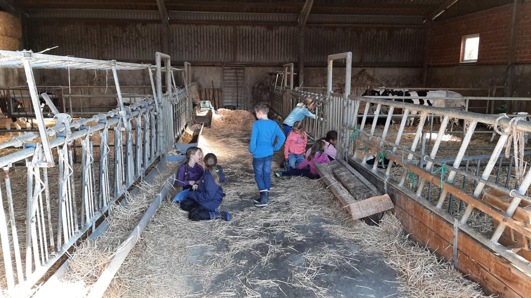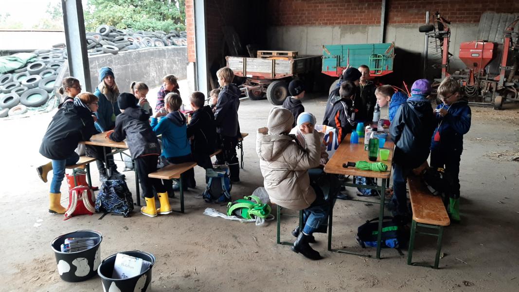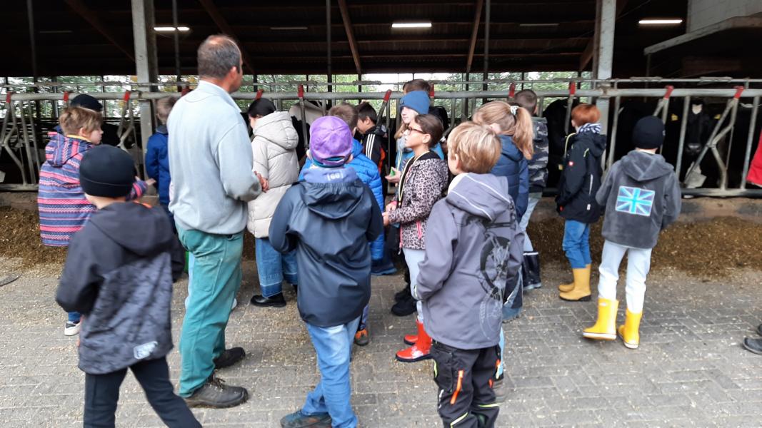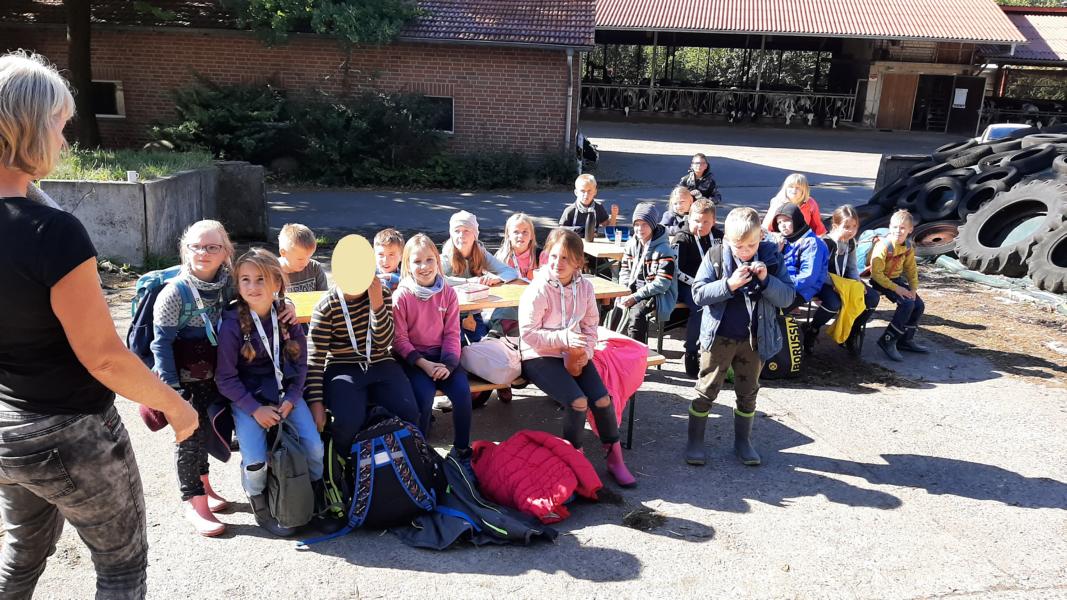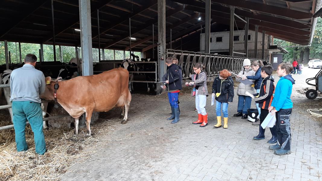 Klasse 3 und 4 besuchtem im Abstand von zwei Wochen den Bauernhof Bösemeier in Westerhausen. Auf dem Hof lernten die Kinder vieles über die Produktion von Milch. In den verschiedenen Stationen durften sie u.a. das Futter für eine Kuh abwiegen, eine Kuh vermessen und deren Herzschlag abhören, den automatischen Melkstand besichtigen und lernten die verschiedenen landwirtschaftlichen Maschinen kennen.