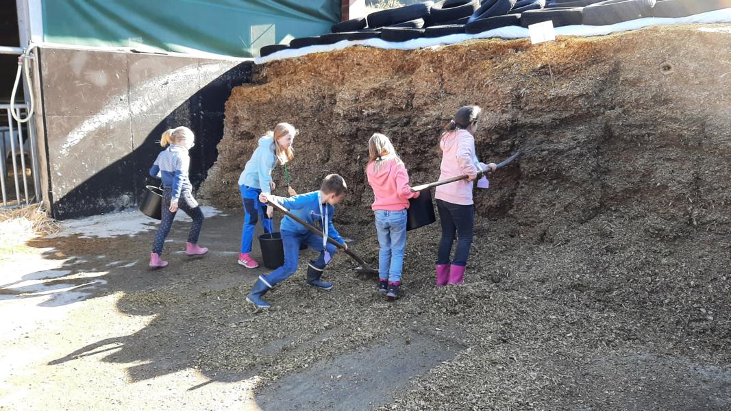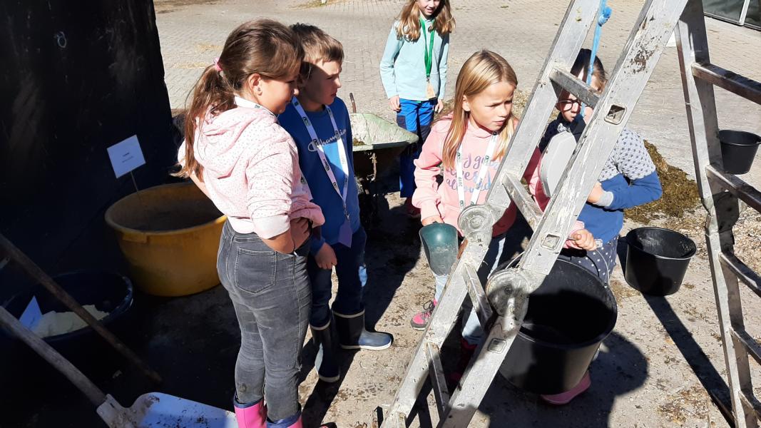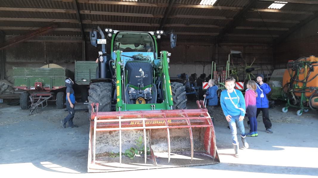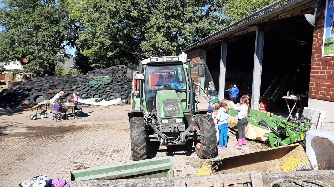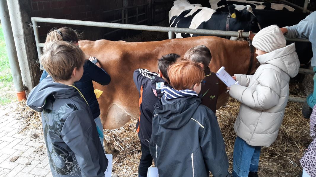 Klasse 3 und 4 besuchtem im Abstand von zwei Wochen den Bauernhof Bösemeier in Westerhausen. Auf dem Hof lernten die Kinder vieles über die Produktion von Milch. In den verschiedenen Stationen durften sie u.a. das Futter für eine Kuh abwiegen, eine Kuh vermessen und deren Herzschlag abhören, den automatischen Melkstand besichtigen und lernten die verschiedenen landwirtschaftlichen Maschinen kennen.