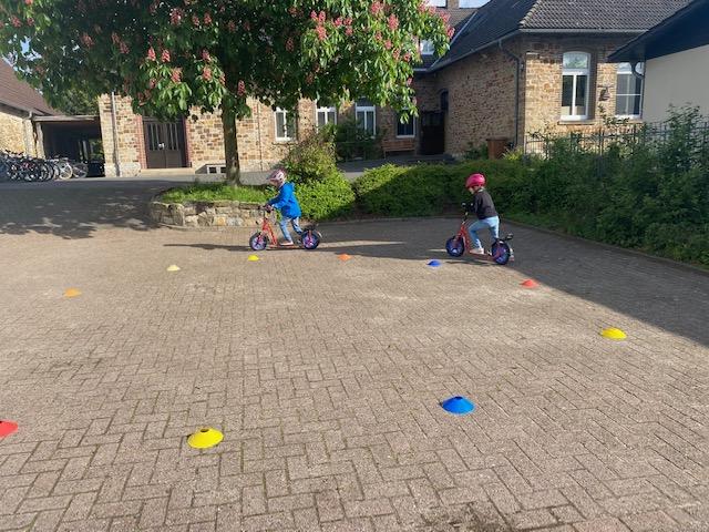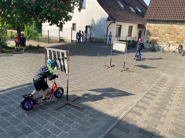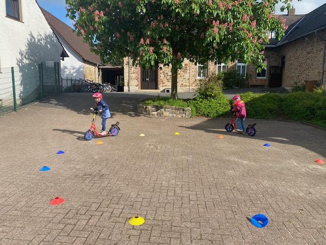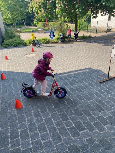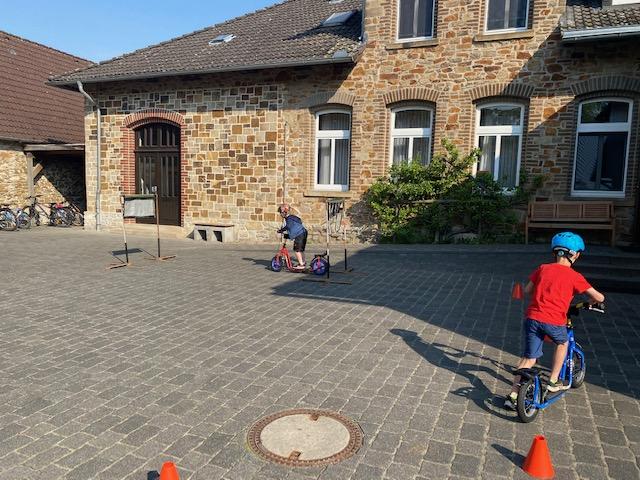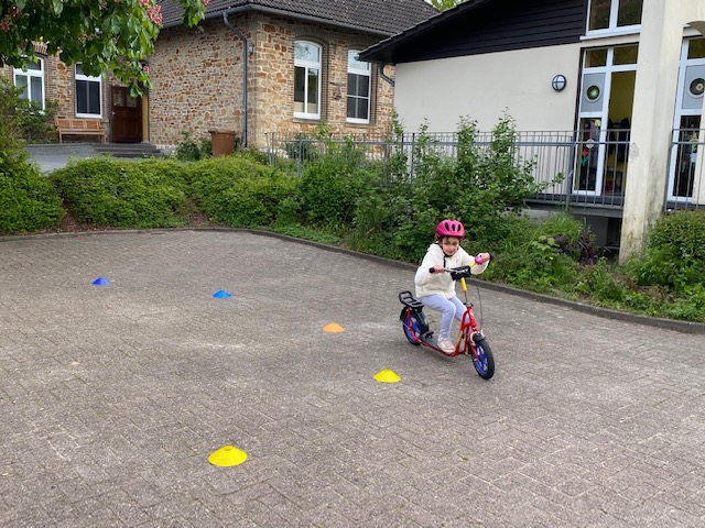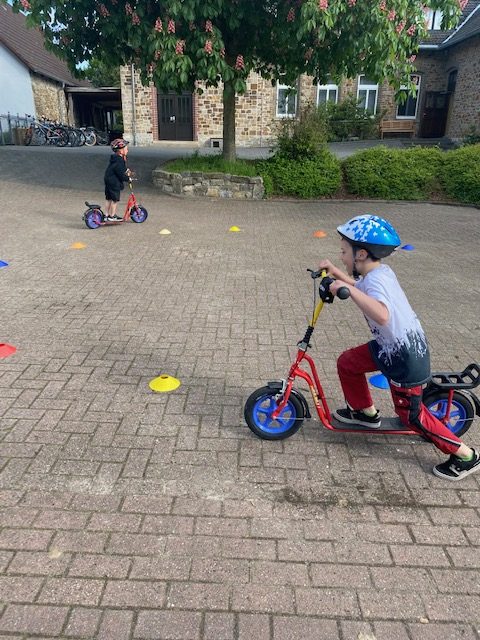 Auch in diesem Jahr konnten wir den Trainingsparcour der Verkehrswacht ausleihen und mit der ersten Klasse drei Tage lang das Rollerfahren üben. Ebenso wurde das Bremsen, das Abstellen, das Tragen und die Fahrt durch verschiedene Hindernisse geübt. Die Kinder waren mit großer Freude dabei und so überrascht es nicht, dass am Ende der Übungsphase alle die kleine Prüfung bestanden und einen Rollerführerschein erhielten.