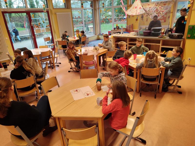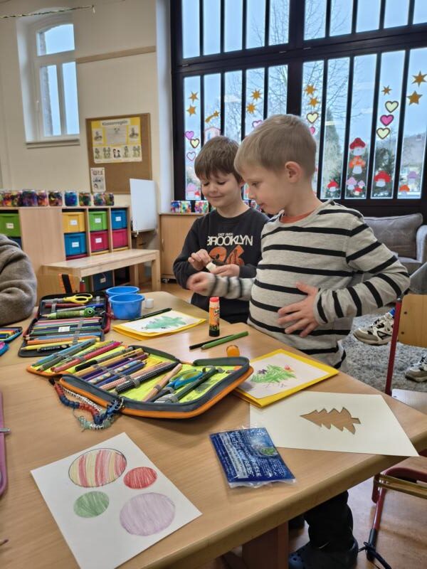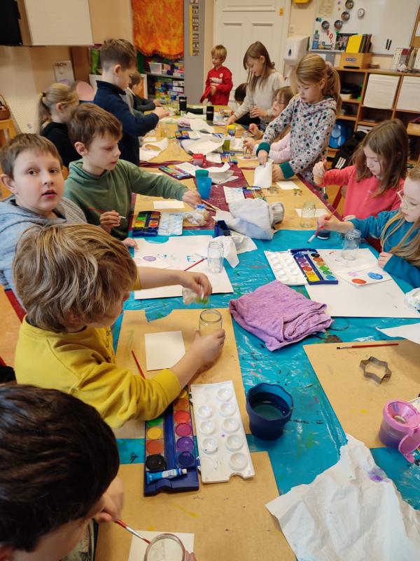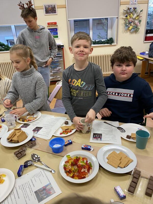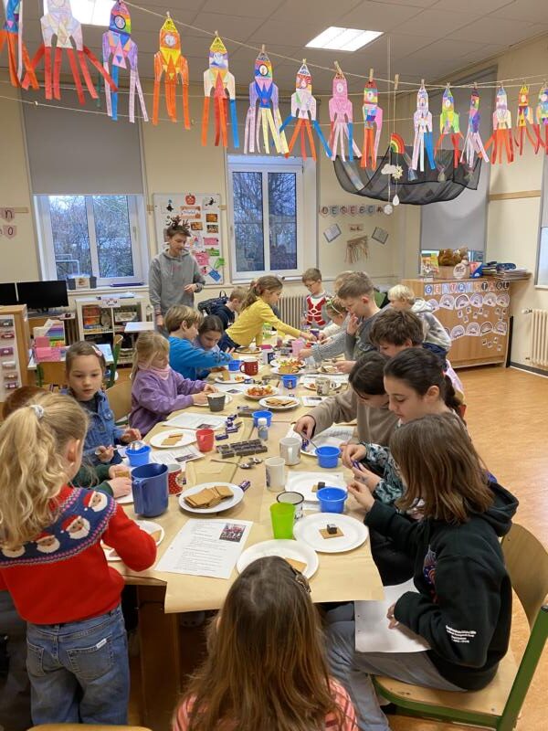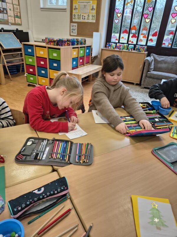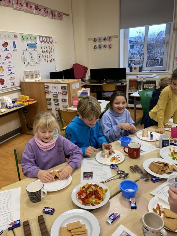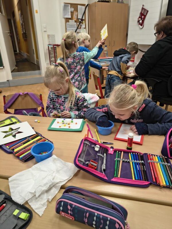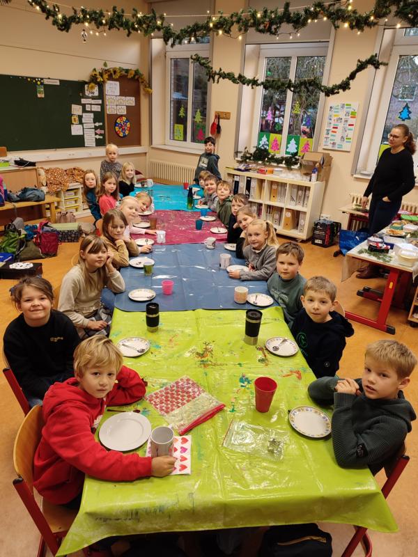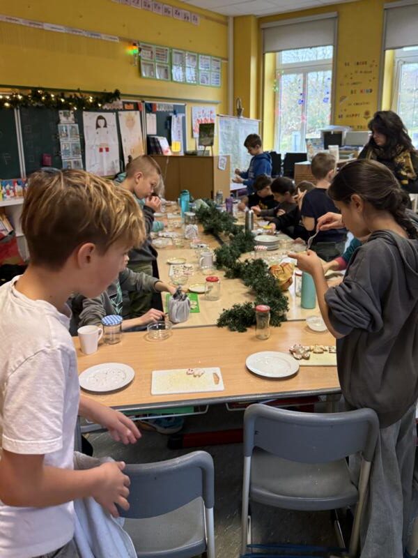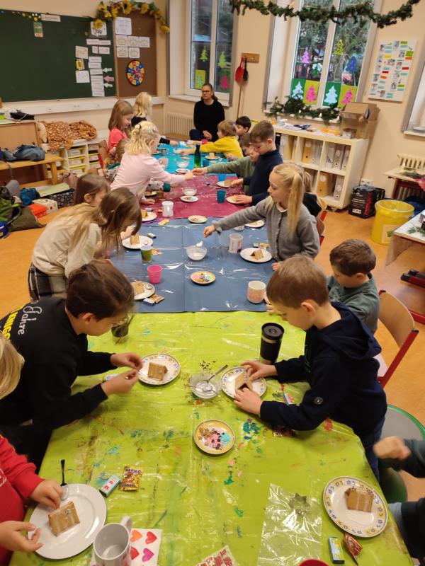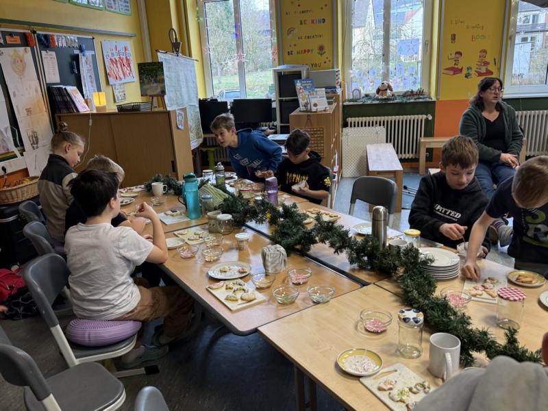 In allen Klassen duftete es nach Weihnachten: Bei unserem klasseninternen Weihnachtsbasteln hatten die Kinder viel Freude und konnten ihrer Kreativität freien Lauf lassen. Die 1. Klasse gestaltete bunte Filztannenbäume und liebevolle Weihnachtskarten. In den Klassen 2 und 3 entstanden fantasievolle Hexenhäuser aus Butterkeksen, die am Ende fast zu schade zum Vernaschen waren. Die 4. Klasse verwandelte das Schulhaus in eine kleine Weihnachtsbäckerei – sie backte Plätzchen und füllte diese anschließend in selbst dekorierte Plätzchengläser. Ein herzliches Dankeschön gilt den vielen helfenden Eltern, die die Aktionen tatkräftig unterstützten und dafür sorgten, dass die Kinder zwischendurch leckere Waffeln genießen und Kakao trinken konnten. Es war ein wunderbarer Vormittag voller Spaß, Kreativität und weihnachtlicher Stimmung!