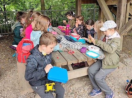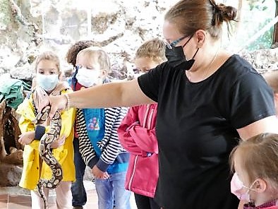 Heute hat der Jahrgang 1 einen Ausflug in den Zoo gemacht. Mit guter Laune, gegen Regen gewappnet und voller Erwartungen kamen wir um 9 Uhr am Osnabrücker Zoo an. Bei einer 1 1/2 Stündigen Führung über Tiere in Bewegung erfuhren wir viele interessante Fakten, konnten spannende Tiere beobachten und sogar eine Schlange streicheln. Danach wurde gefrühstückt und auf dem Giraffenspielplatz gespielt. Glücklich und zufrieden kamen alle um 12:30Uhr wieder an der Schule an. Das war ein toller Tag!
