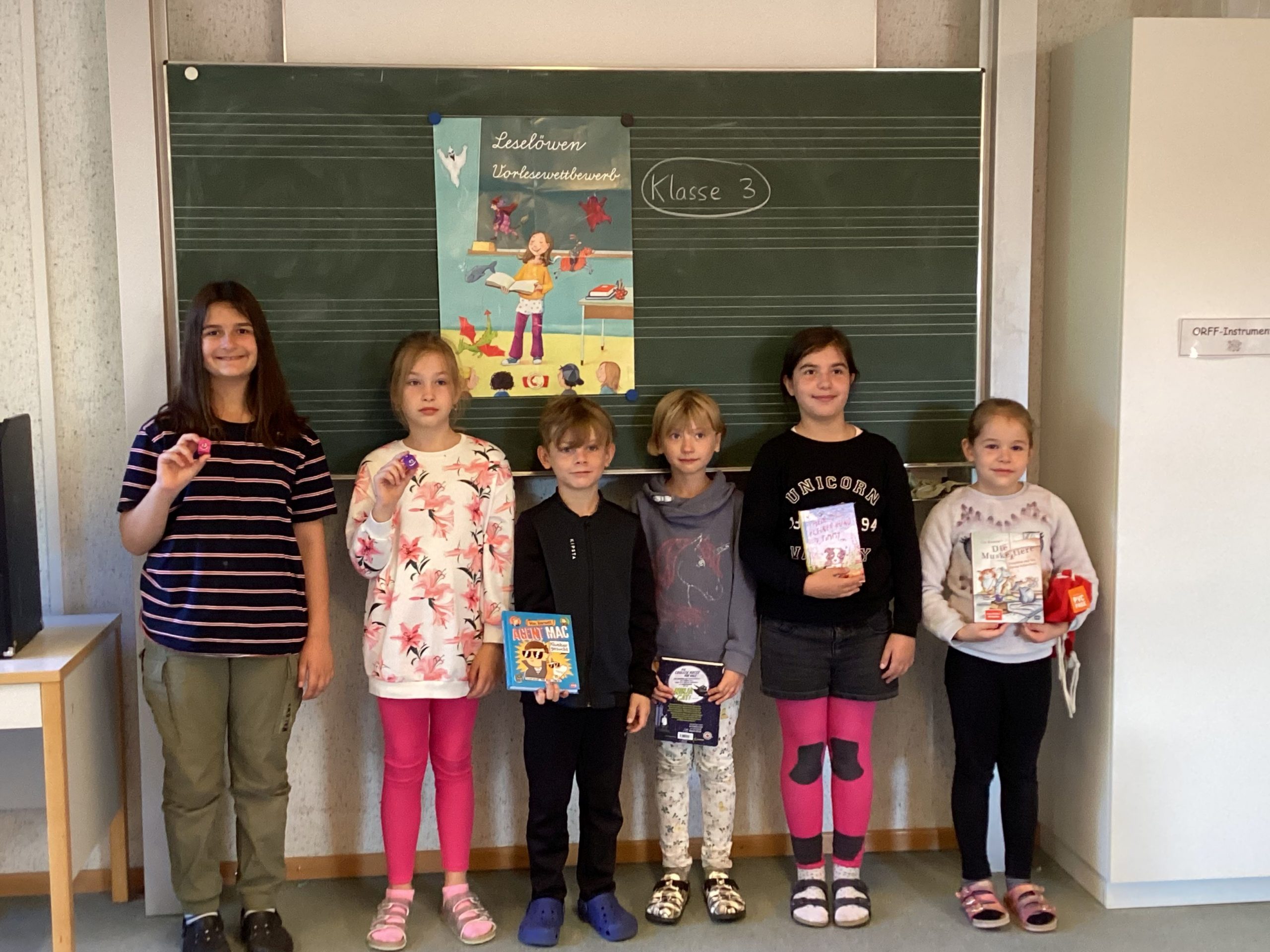 Beim diesjährigen Vorlesewettbewerb der beiden 3. Klassen gab es ein knappes Kopf-an-Kopf-Rennen und die Jury hatte es nicht leicht, sich für die Sieger zu entscheiden. Aber schließlich stand es fest: Der 1. Platz ging an Emily Baumgart. Platz 2 teilten sich Namida Randau und Joos Kuhl und auf den 3. Platz kam Folea Uljaj. Wir gratulieren allen Vorleserinnen und Vorlesern zu einer wirklich starken Leseleistung und danken der Jury (Finja Mergelmeyer und Finja Vosgröne, Monika Düvel und Claudia Spielmeyer).
