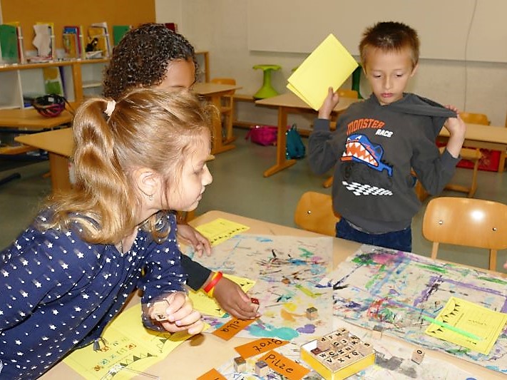 Im Mathematikunterricht der Klasse 3 wird gerade der Zahlenraum bis 1000 erweitert. Mit viel Begeisterung, Geschick und Geduld bauen einige Kinder Tausenderwürfel aus 1000 kleinen Würfeln. Stolz präsentieren sie hier ihr Ergebnis. So wird die Zahl 1000 richtig „begreifbar“ :-).