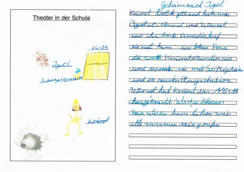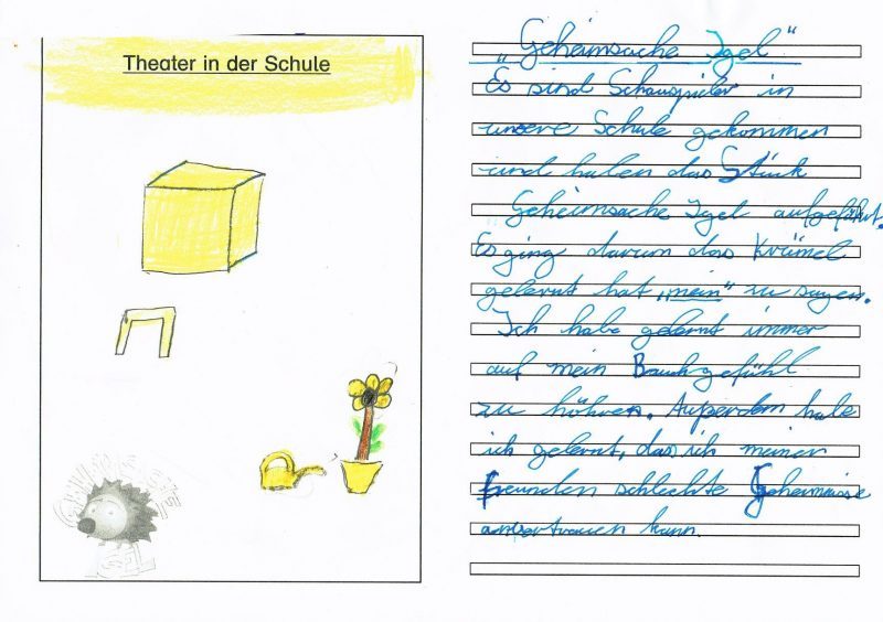 Die dritten und vierten Klassen haben am Donnerstag, 2.3.23 im Klassenraum der 2a das Theaterstück: “Geheimsache Igel” angeschaut. Die folgenden Textstellen aus den “Schatzbuch”-Einträgen der Klasse 4b geben einen kleinen Einblick über das Stück und das, was die Kinder gelernt haben…