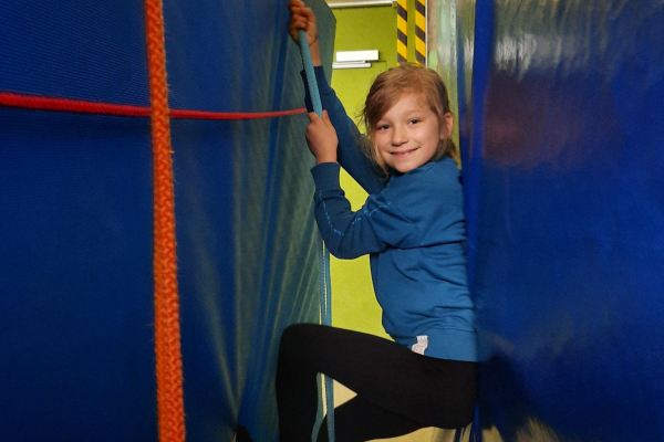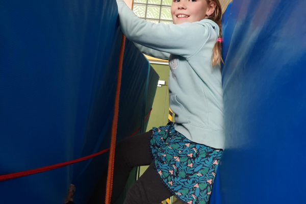 Mir hat der Mobi-Tag Spaß gemacht. Ich war mit Lilia und Paula in einer Gruppe. Mir hat die Gerätestation in der Halle gefallen. Ich bin dort auch Rollbrett gefahren. Dabei fand ich die Höhle toll, durch die man durchfahren musste. (Pauline)