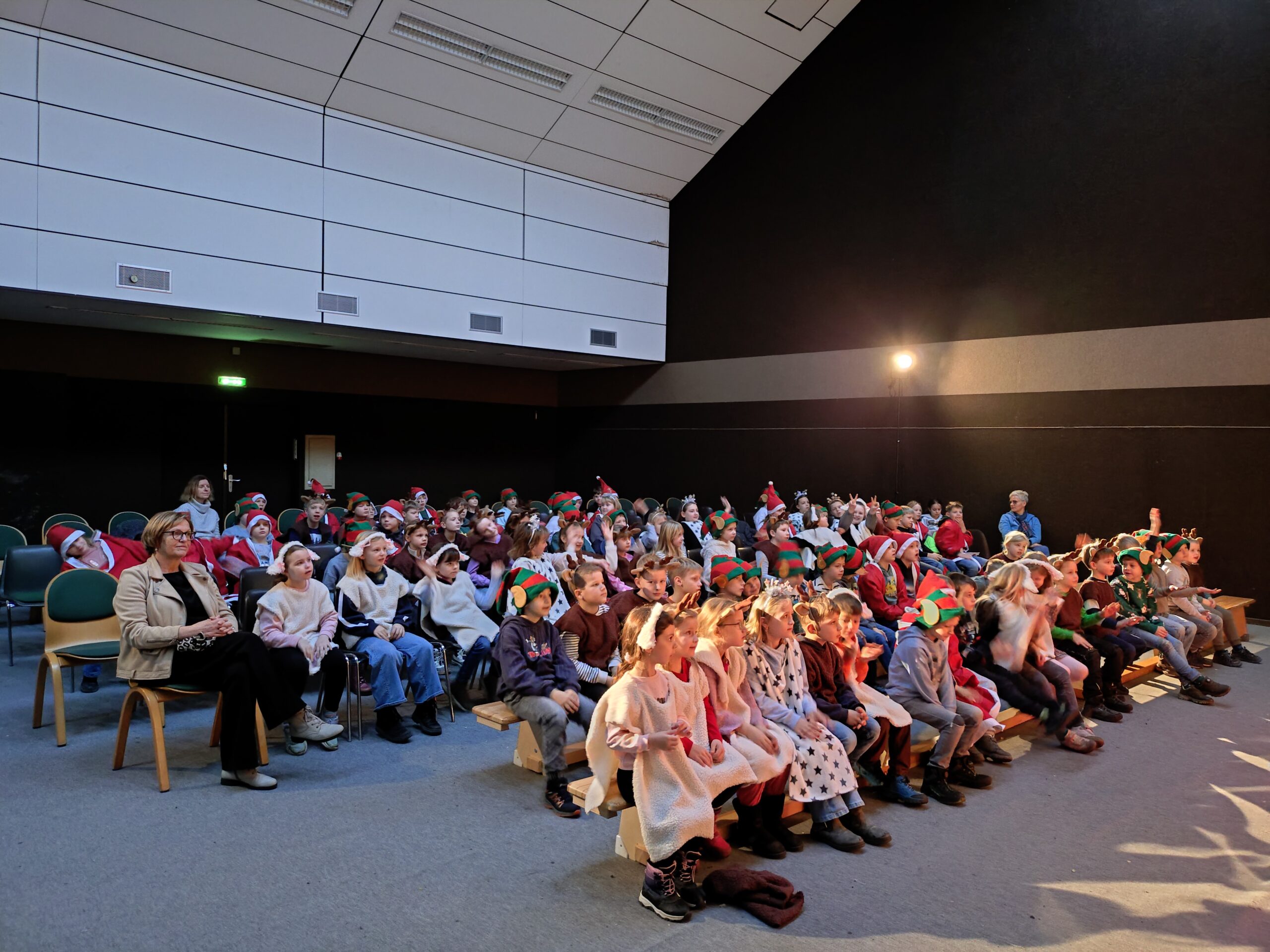 Die Kinder waren hier nicht nur Zuschauer, sondern wurden in eine Weihnachtsgeschichte eingebunden und machten sich als Rentiere, Weihnachtsmänner, Sterne und Schafe auf die Suche nach den Wichteln.