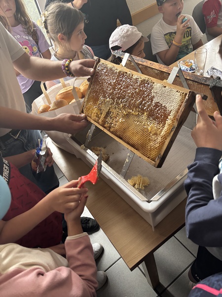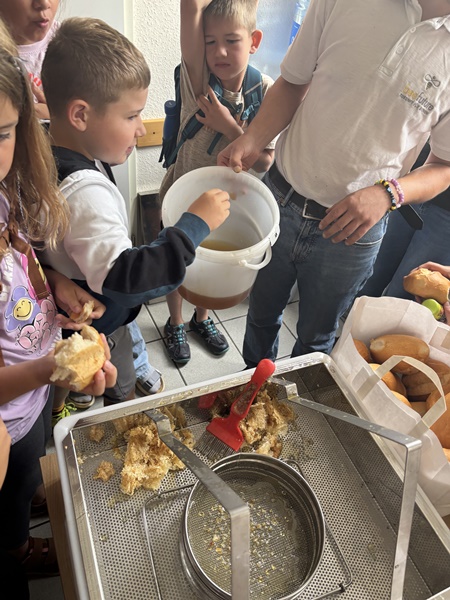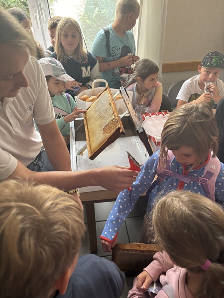 Die Kinder konnten den Insekten auf Augenhöhe begegnen und bei der Herstellung von Honig aktiv mitarbeiten.