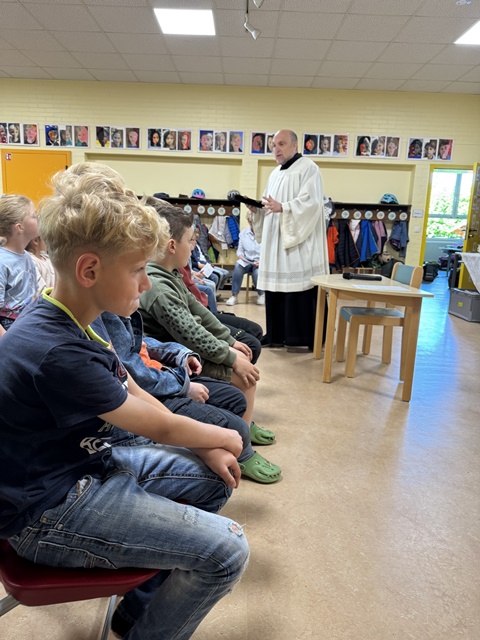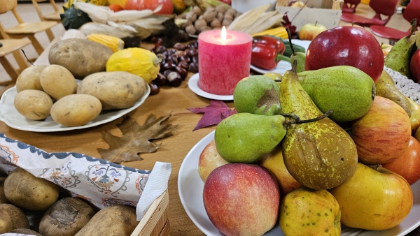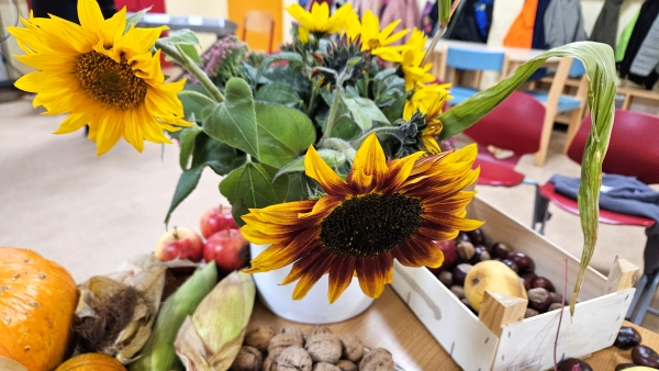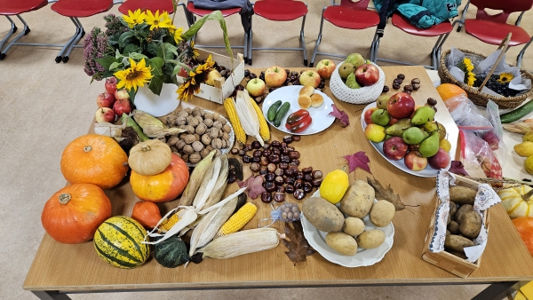 Am 8. Oktober feierten die Kinder in der Schule Erntedank. Gemeinsam mit dem Pastoralreferenten Herrn Hoge sprachen sievintensiv über das Thema „Dankbarkeit“. Alle Schülerinnen und Schüler freuten sich bereits auf die Veranstaltung und brachten viele Gaben von zu Hause mit.
