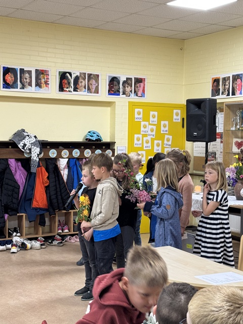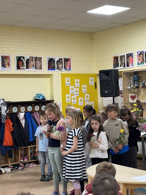 Die Klasse 1 hat die Andacht mit vielen Liedern und Kinderbeiträgen geplant und durchgeführt. Gemeinsam feierten Kinder, Lehrkräfte, Eltern und Großeltern.