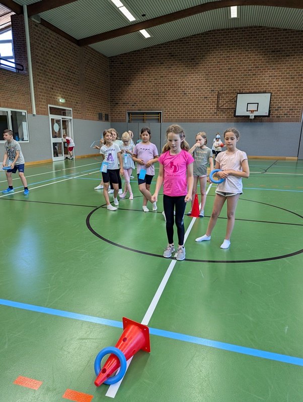 Auf dem Schulhof und in der Pausenhalle konnten alle Kinder ihre sportlichen Leistungen zeigen und hatten daran jede Menge Spaß.