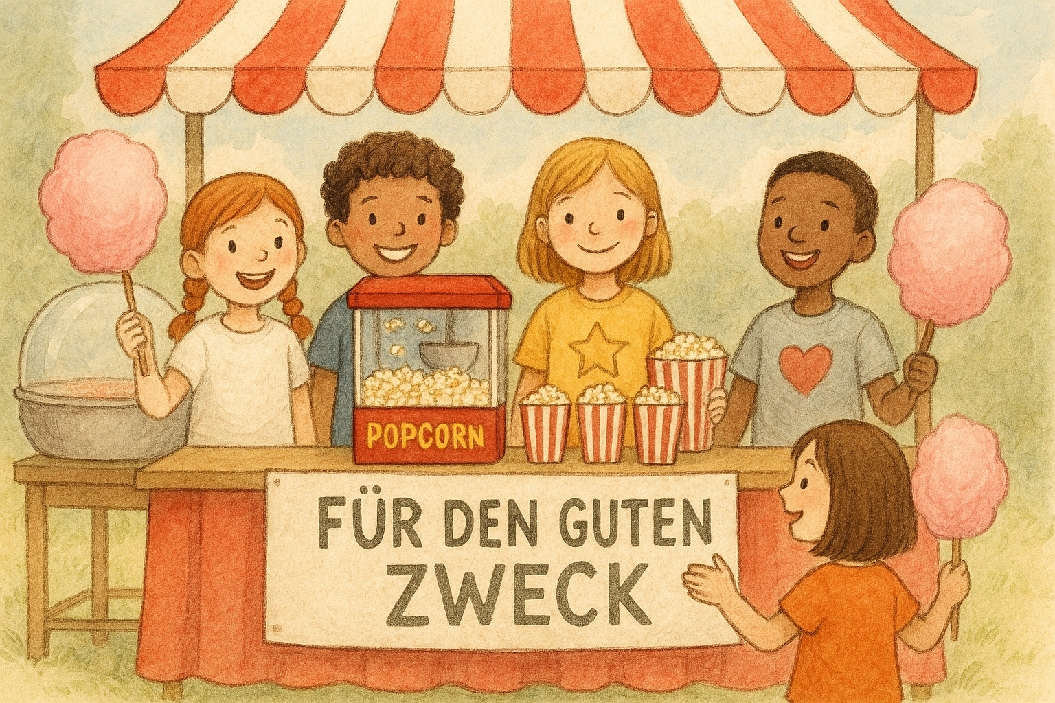 Kurz vor den Weihnachtsferien verkauften die Schülerinnen und Schüler Popcorn und Zuckerwatte an die Kinder. Der Andrang am Verkaufsstand war sehr groß und alle freuten sich über die gelungene Abwechslung.
