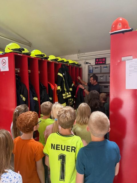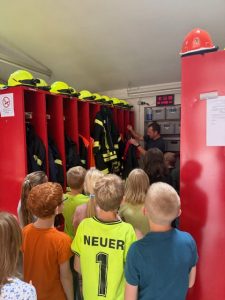 In der Schule unterm Regenbogen wurden in den vergangenen Tagen Feuerschutzübungen durchgeführt. Nachdem alle Kinder, Lehrer*innen und Klassentiere sicher den Weg zu Ihren Sammelplätzen gefunden hatten, durften die Kinder das Feuerwehrauto bewundern und echten Feuerwehrleuten Fragen stellen. Wir danken allen Helfern sehr herzlich für den spannenden Vormittag.