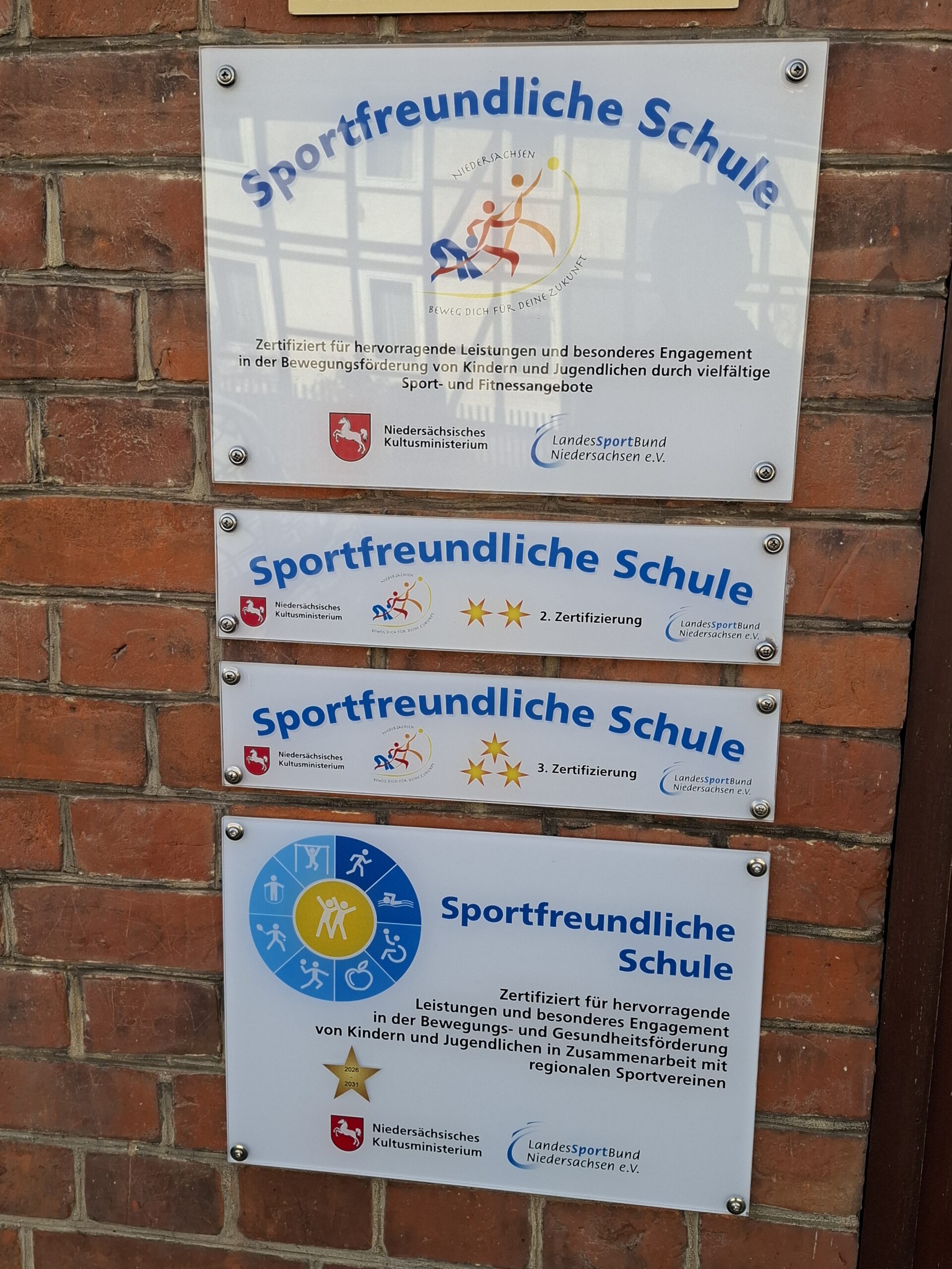 Dank der Unterstützung durch die Vereine SC Schoningen und OLV Uslar und natürlich dank der Mithilfe von Kindern, Eltern, Kollegium und MitarbeiterInnen der Grundschule Schoningen sowie der Stadt Uslar sind wir für die nächsten 5 Jahre wieder zertifiziert. Erwähnt werden muss aber auch der Förderverein, der die finanziellen Mittel für die Pausenspielgeräte zur Verfügung stellt. Nicht nur die Teilnahme an sportlichen Wettbewerben ist wichtig, sondern auch die Ausrichtung eigener Sportevents. Als Nächstes steht ein Schwimmtag auf dem Stundenplan!