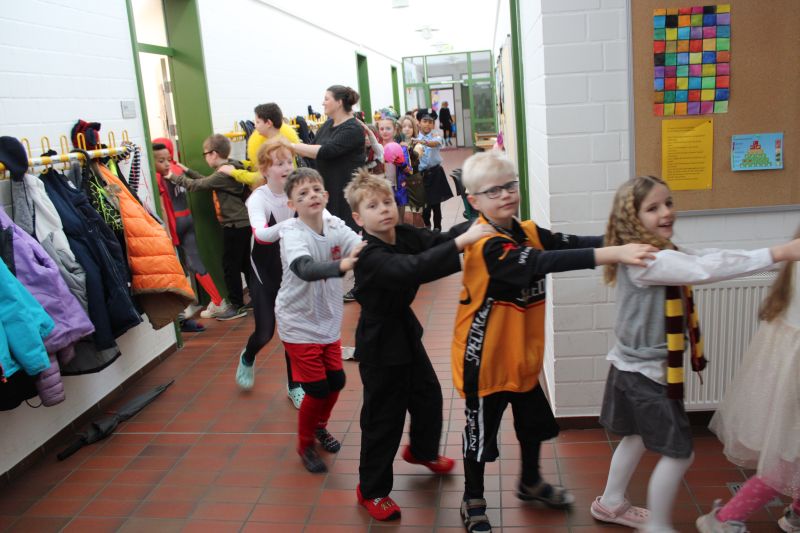 Am Montag, dem 12. Februar feierten wir Karneval in allen Klassen der Süderbergschule. Nach zwei Stunden in den Klassen gab es eine Polonaise durch die Schule und wir machten gemeinsam Party im Musikraum. Fotos von der Feier:
