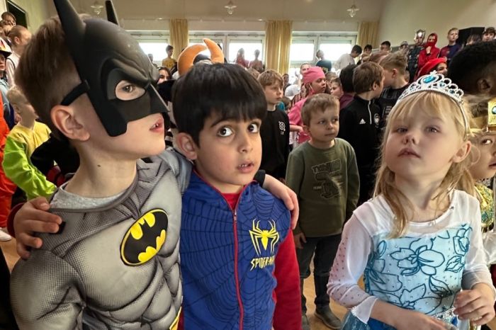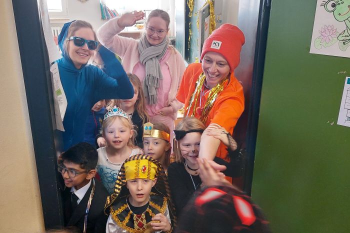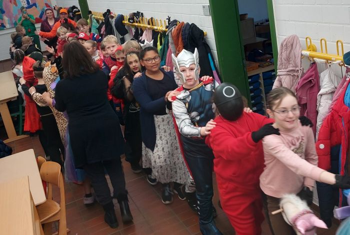 Am Montag, 3. März, feierten wir an der Süderbergschule Karneval. Kinder und das Schulteam kamen verkleidet zur Schule und so hatte der normale Schulunterricht mal Pause. Das gab eine ziemlich gute Stimmung:
