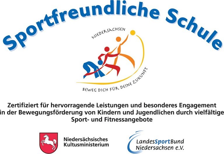 Gleich zu Beginn eröffnete den Tag eine gemeinsame Feier in der Turnhalle. Unser Bürgermeister Herr Dr. Dörsam, VertreterInnen der Landesschulbehörde, unsere Schulleitung und die gesamte Schülerschaft zelebrierten unsere Auszeichnung als Sportfreundliche Schule. Dieser Titel wurde uns vom Land Niedersachsen erneut für die kommenden 5 Jahre verliehen, worüber wir uns sehr freuen!