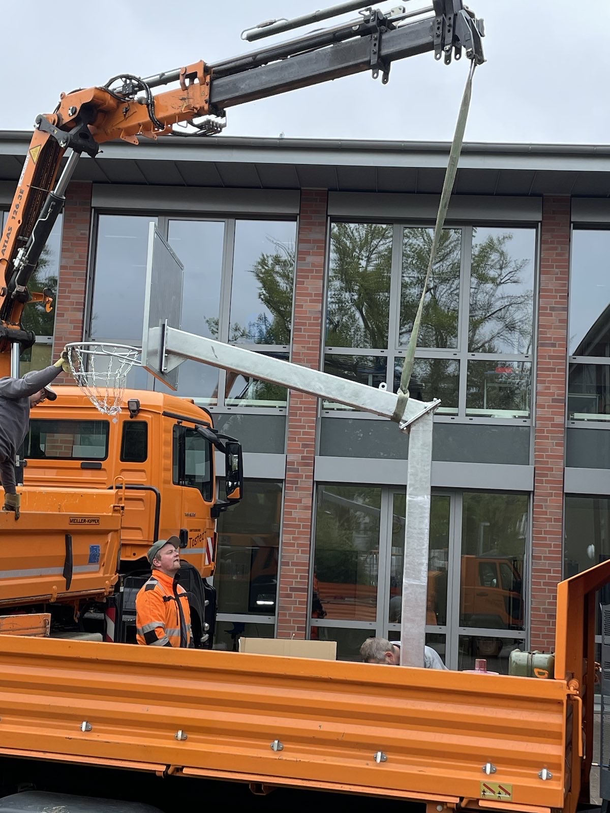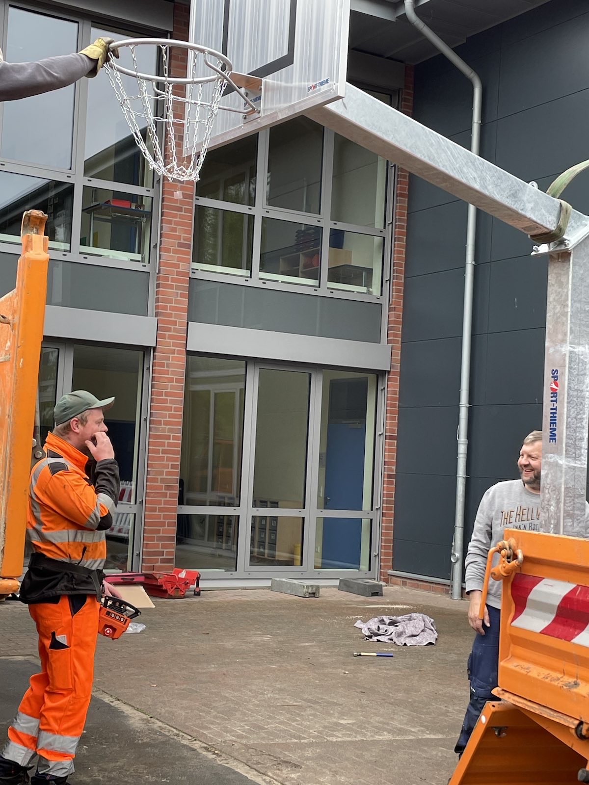 Sportbegeisterte Schülerinnen und Schüler können sich freuen, denn seit dem 11. Mai 2023 gibt es auf dem bislang leeren und wenig genutzten geteerten Schulhof eine brandneue Basketballanlage. Diese aufregende Ergänzung bietet den jungen Sportlern die Möglichkeit, ihre Basketballfähigkeiten zu verbessern und ihre Leidenschaft für diesen beliebten Ballsport auszuleben.