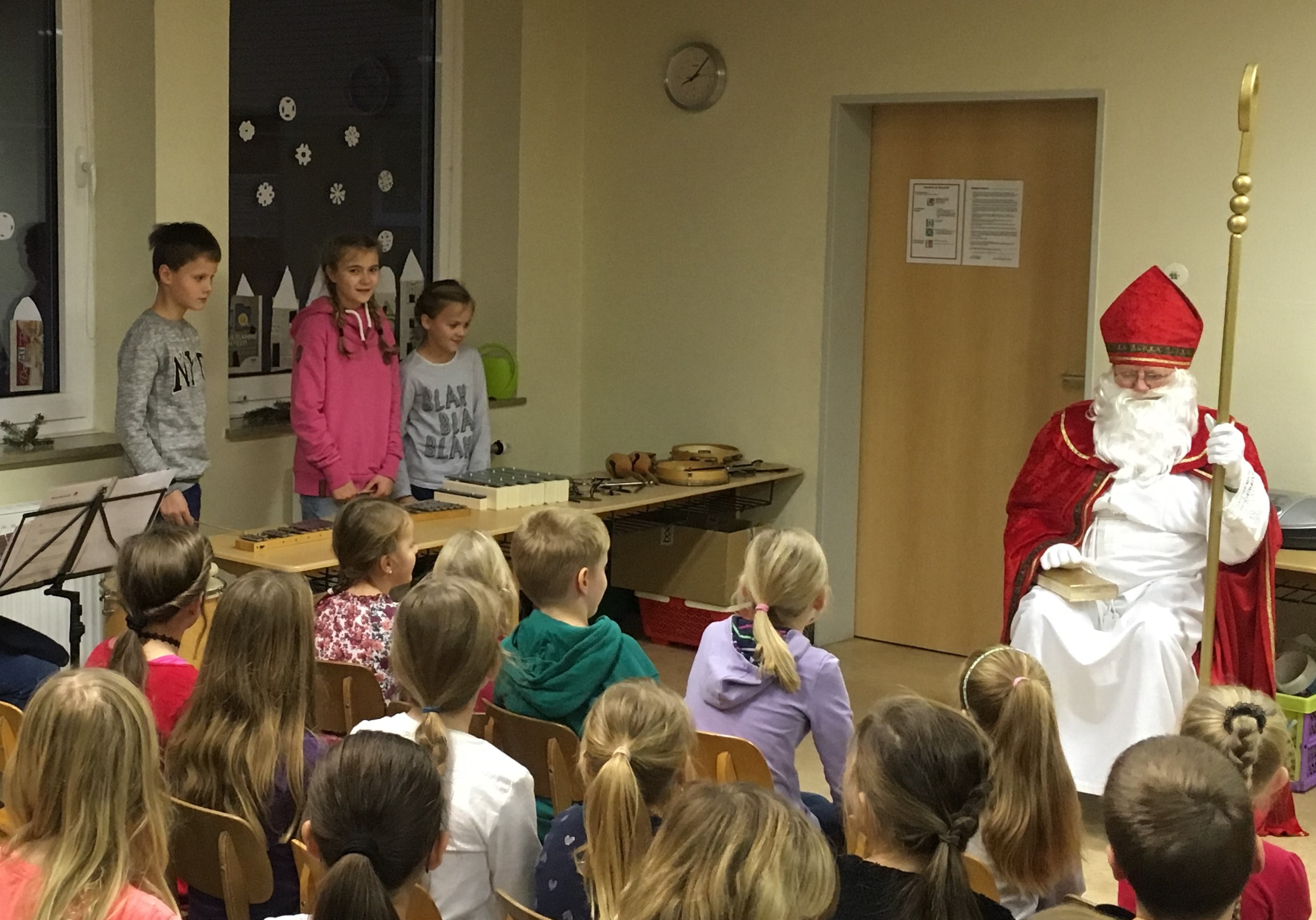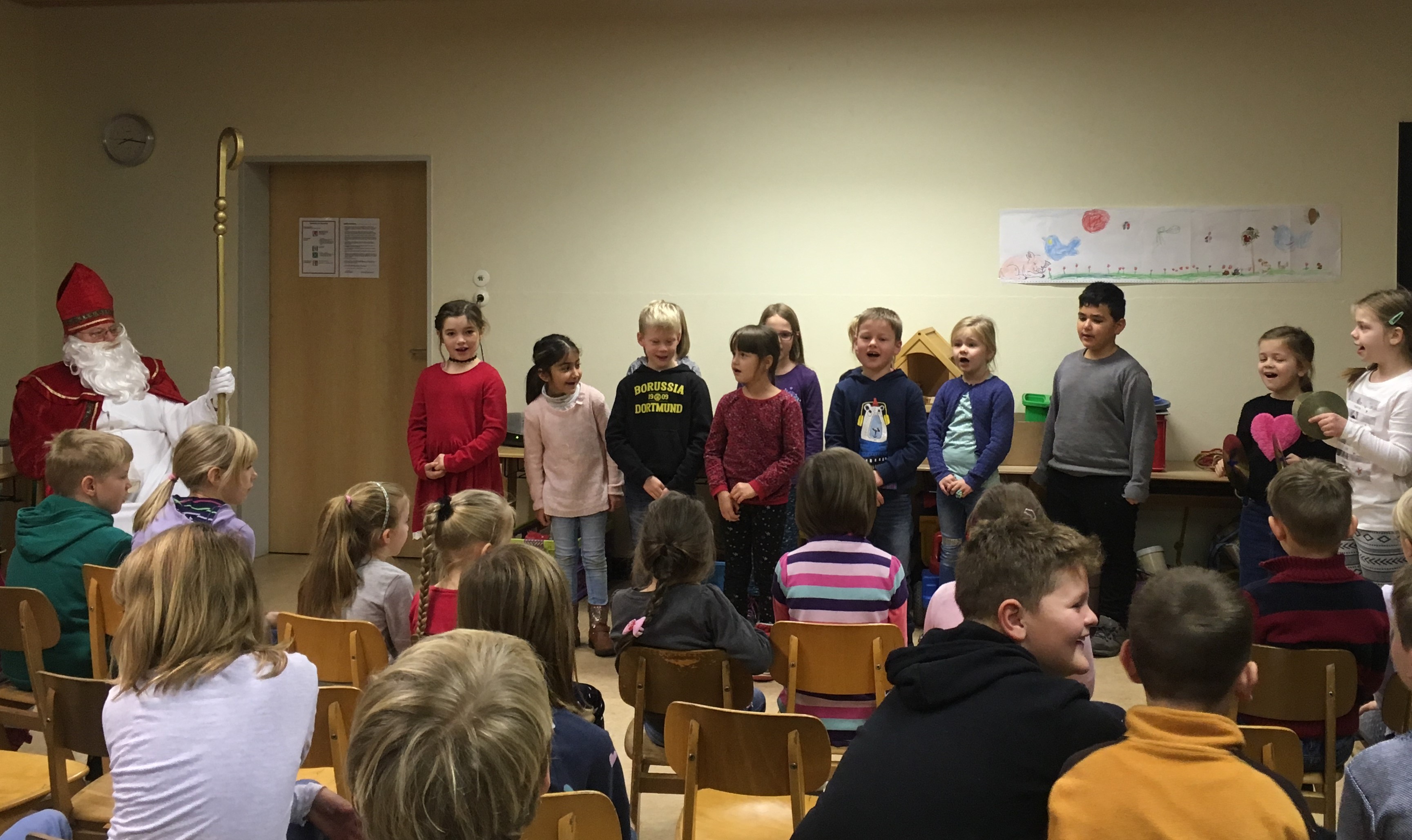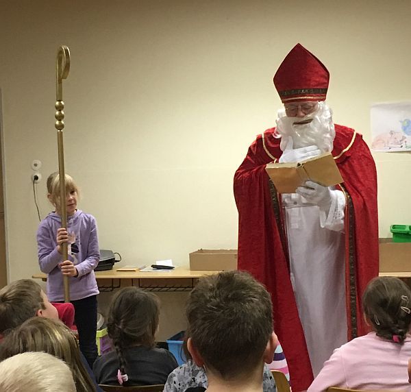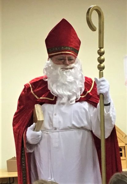Diakon August Böckmann übernahm auch in diesem Jahr wieder die Rolle des guten Bischofs und vermittelte den Kindern einen Eindruck, weshalb die Erinnerung an das Wirken des Bischofs von Myra auch heute noch wichtig ist.