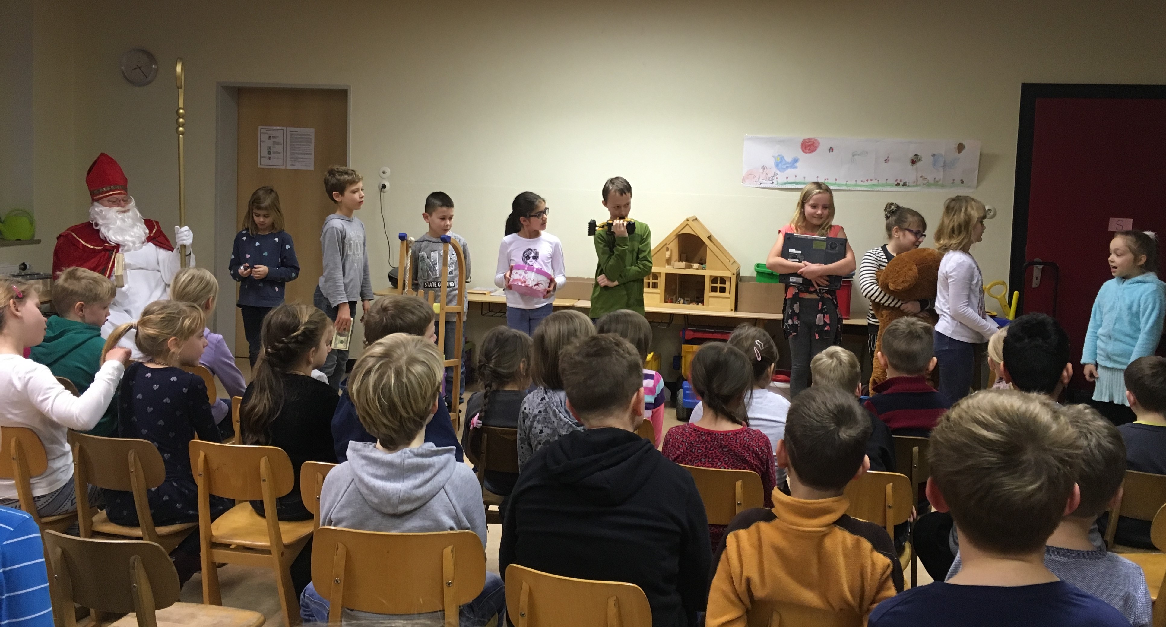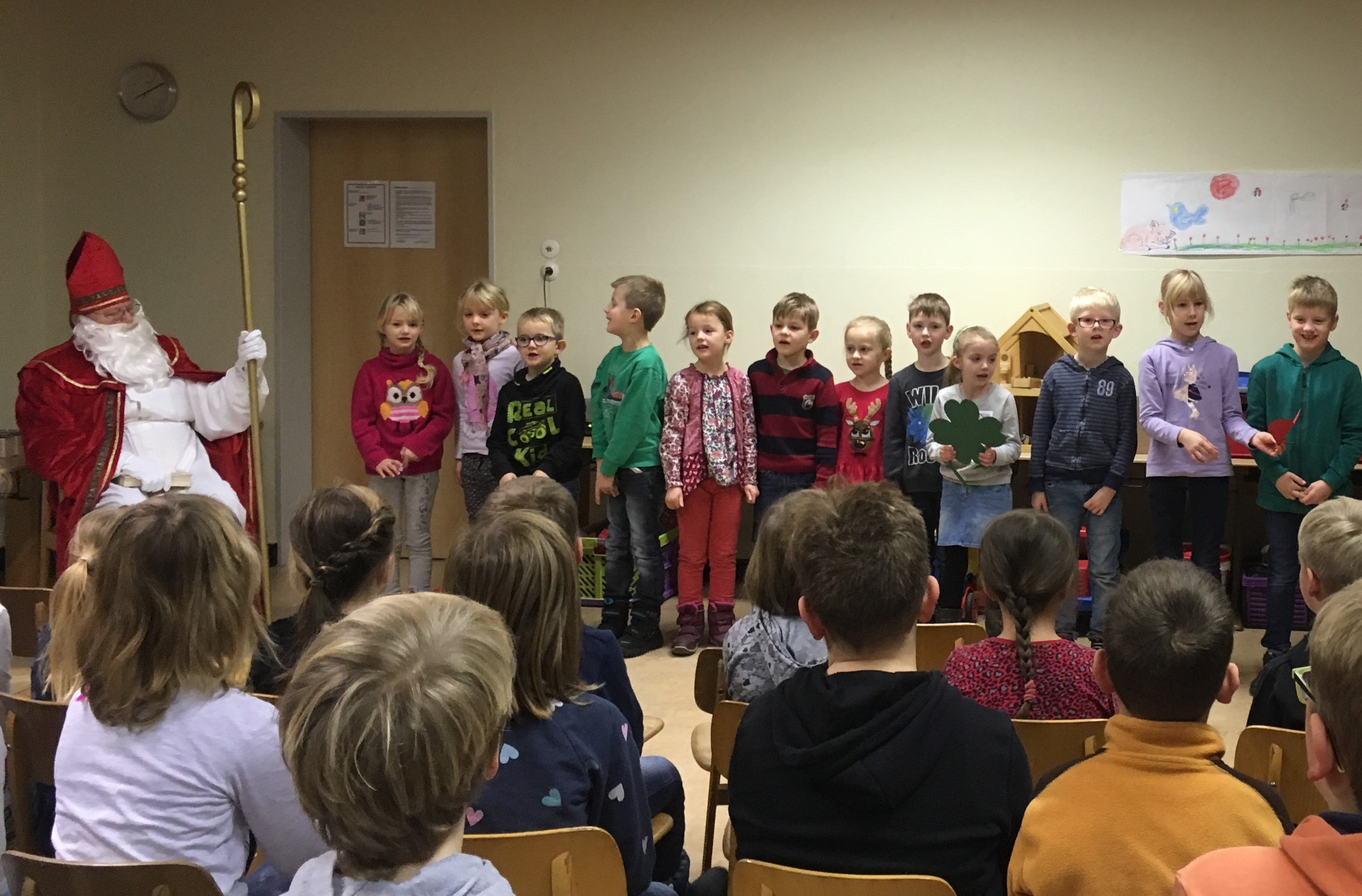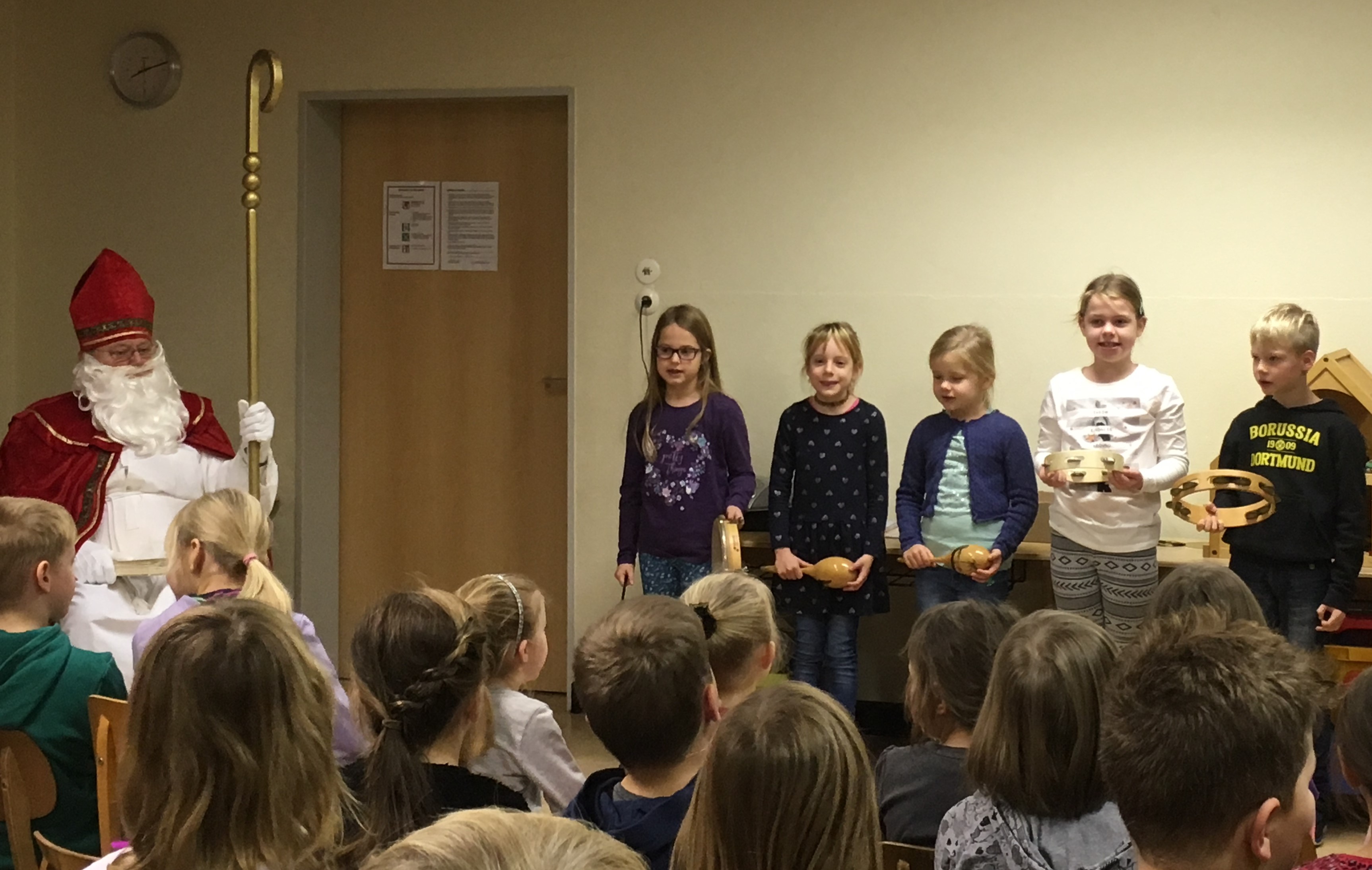 Diakon August Böckmann übernahm auch in diesem Jahr wieder die Rolle des guten Bischofs und vermittelte den Kindern einen Eindruck, weshalb die Erinnerung an das Wirken des Bischofs von Myra auch heute noch wichtig ist.