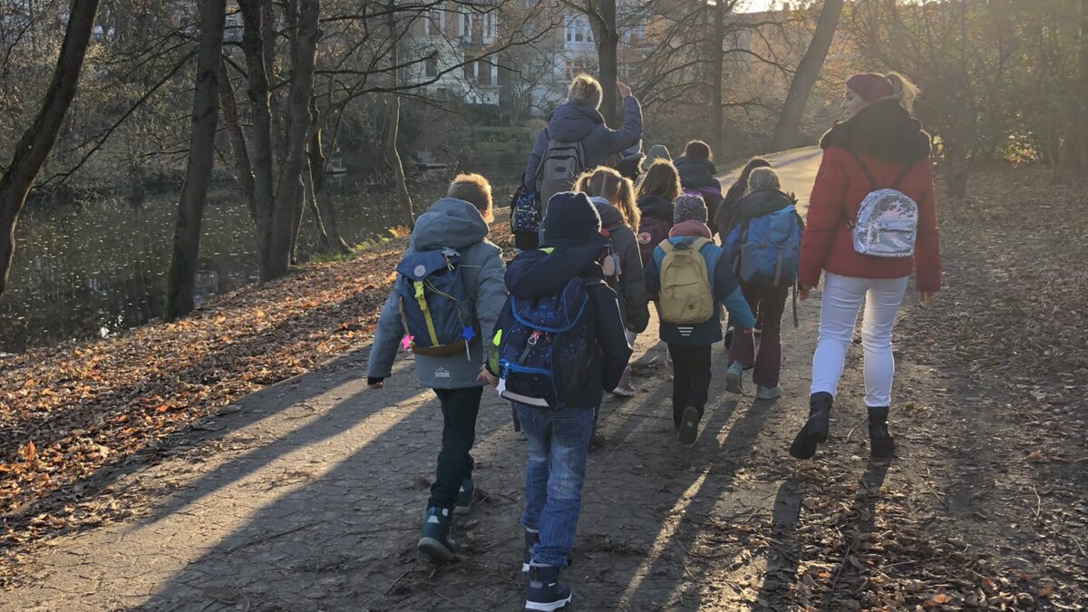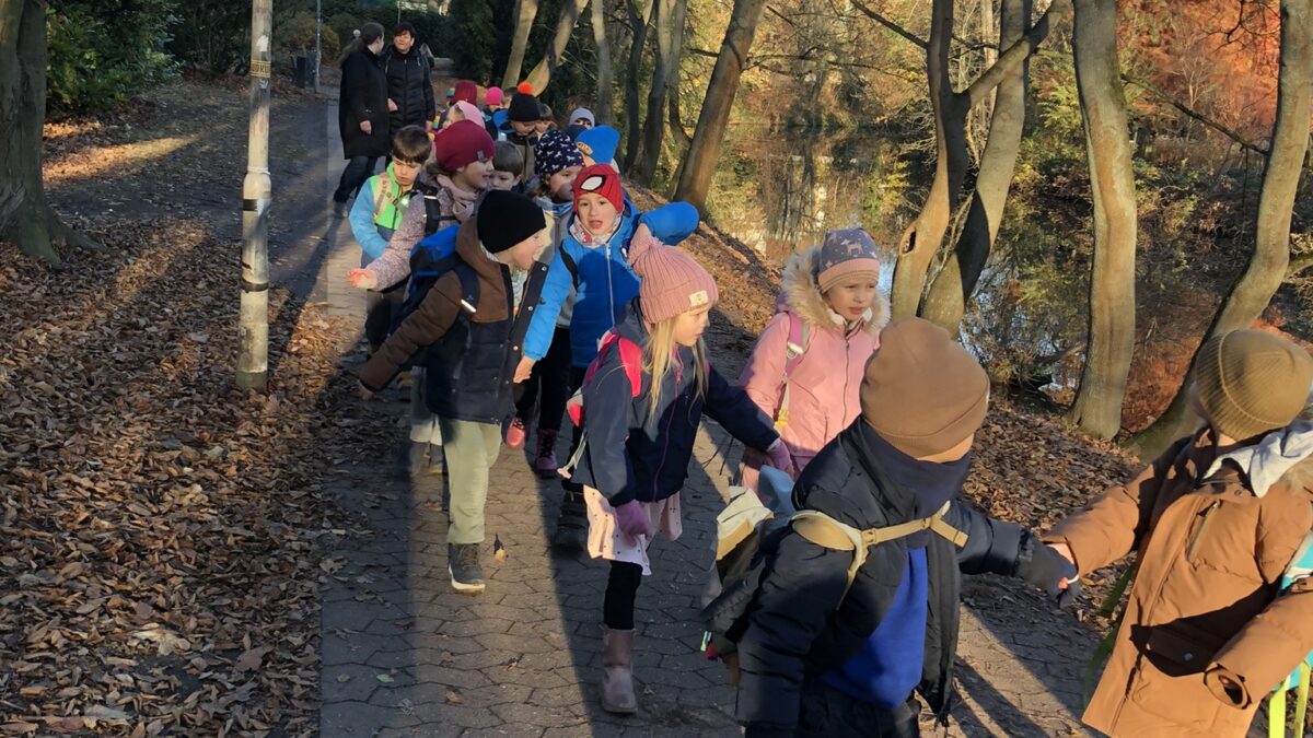 Am Montag, den 1.12. besuchten alle 10 Klassen unserer Schule gemeinsam das Weihnachtsmärchen im Staatstheater. Bei strahlendem Sonnenschein machten sich die Erstklässlerinnen und Erstklässler schon früh auf den Weg und tobten sich noch auf dem Spielplatz im Theaterpark aus, bevor die Vorstellung um 11 Uhr begann.