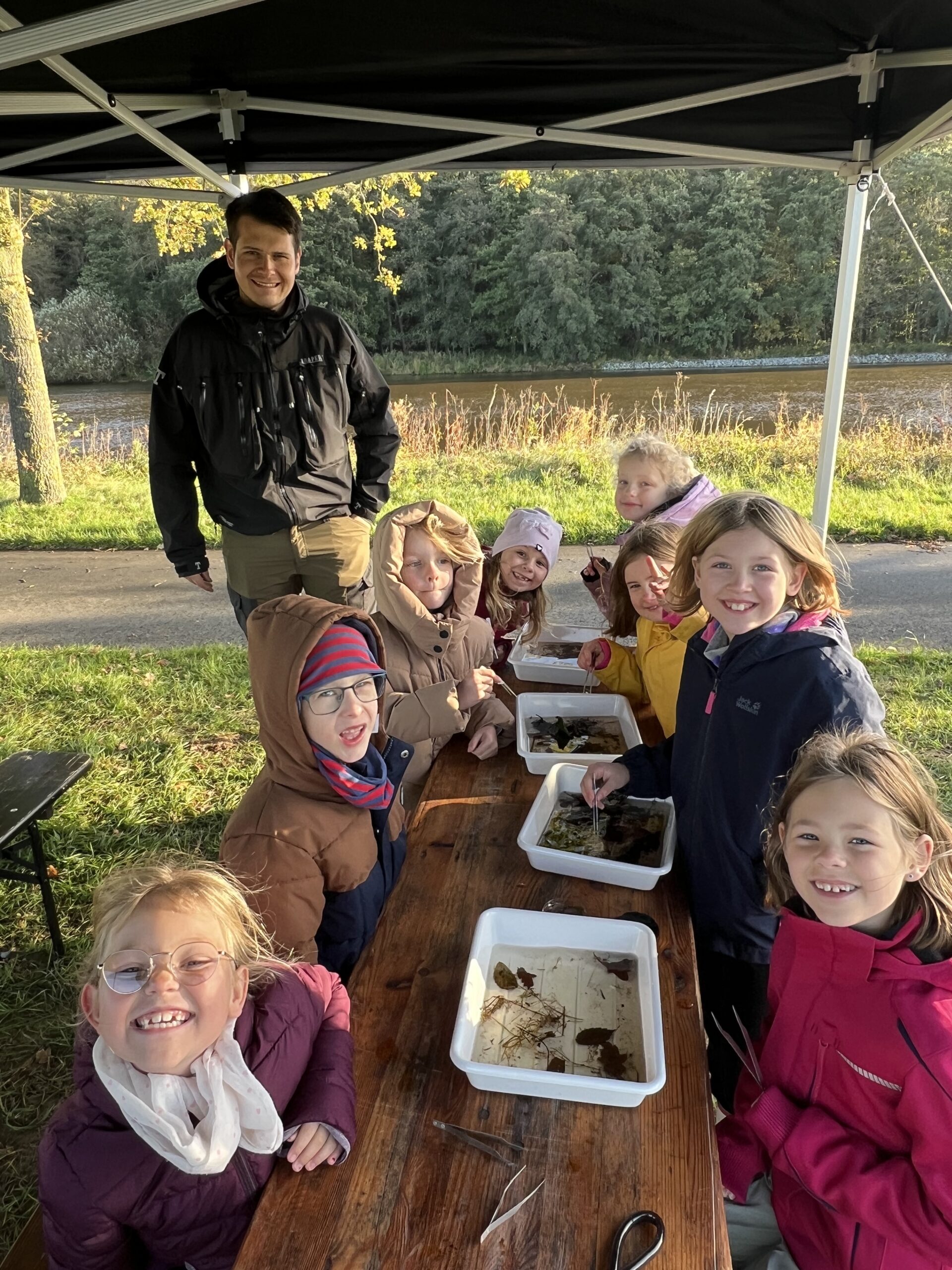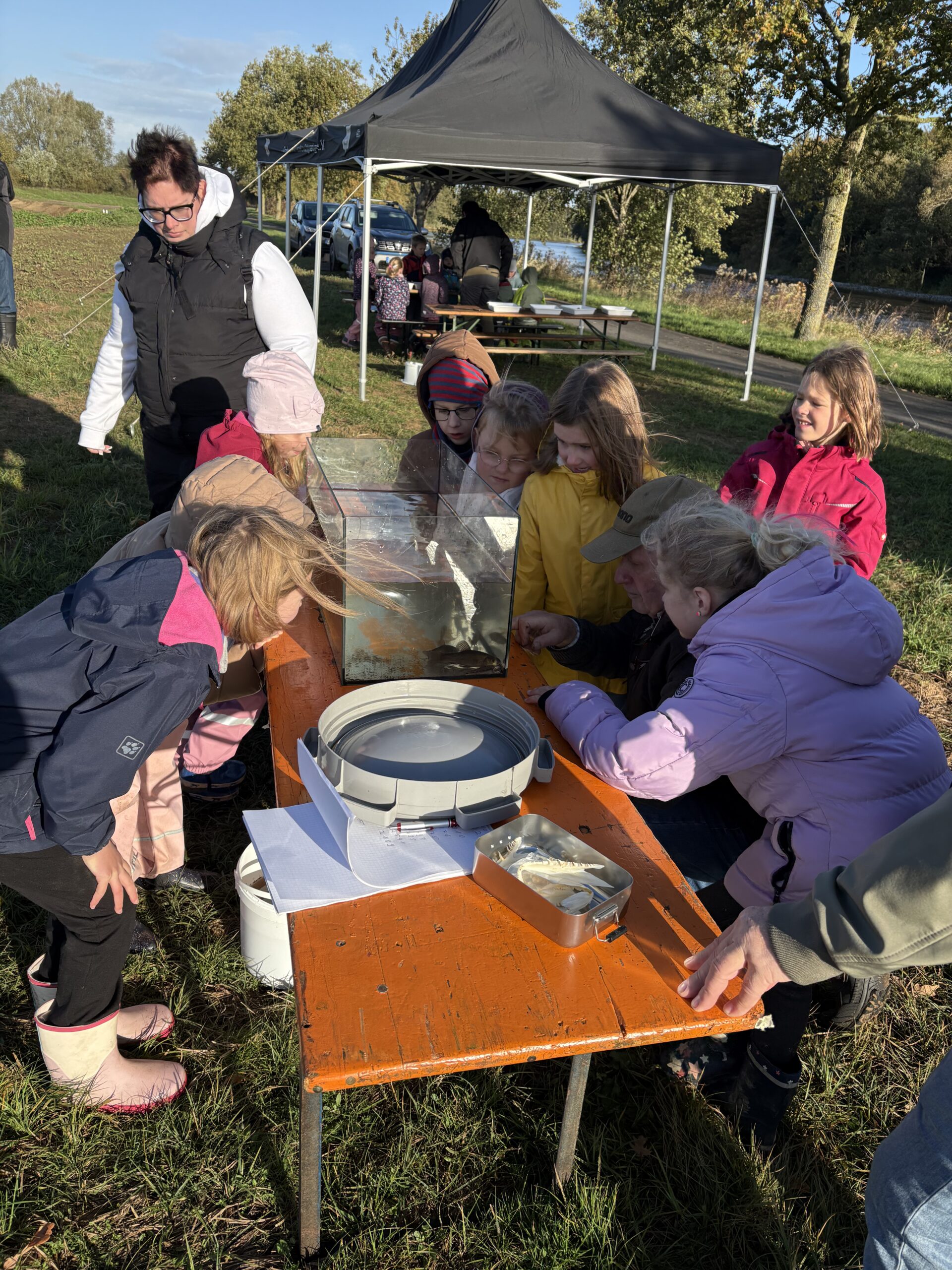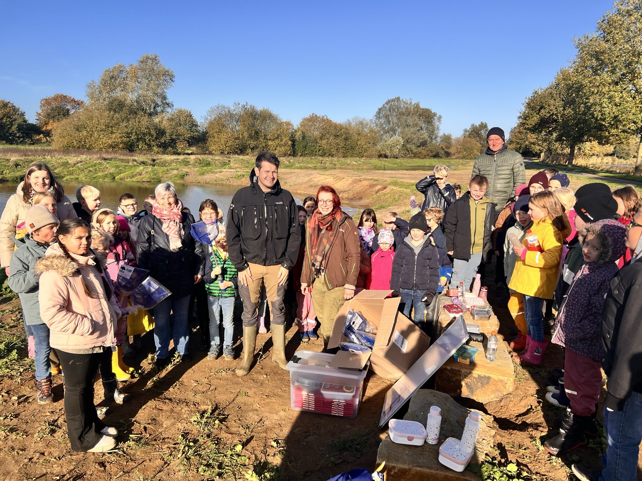 Bei schönem Herbstwetter versammelte sich die gesamte Schulgemeinschaft, um diesen besonderen Lernort im Freien offiziell zu eröffnen. An verschiedenen Mitmach-Stationen, gestaltet vom Landkreis Emsland, der Naturschutzstiftung Emsland und dem Angelsportverein Steinbild, konnten die Kinder Natur hautnah erleben. Sie säten Wildblumen, erforschten Kleintiere im Wasser und lernten heimische Fischarten kennen. Mit viel Neugier und Begeisterung wurde geforscht, gestaunt und gelacht – ein Tag, der zeigt, wie spannend Lernen in der Natur sein kann. Das Blaue Klassenzimmer wird künftig regelmäßig genutzt und bietet neue Möglichkeiten, Unterricht, Umweltbildung und Naturerlebnis zu verbinden.