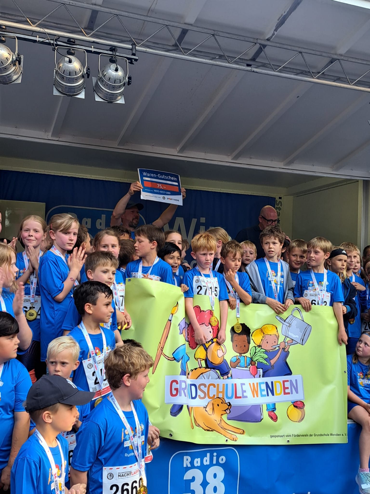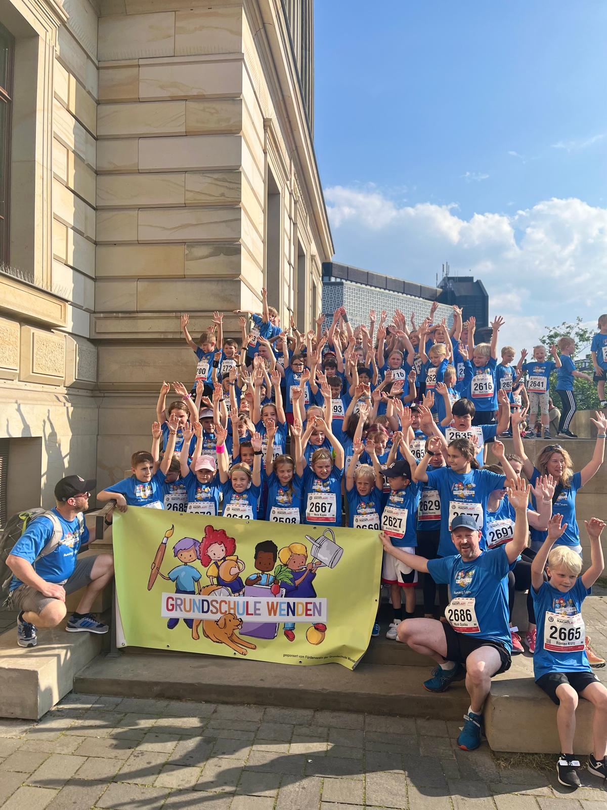 Am 7. Juni 2024 war es endlich soweit! 69 Kinder der GS Wenden gingen zusammen mit 54 Begleitläufern und 4 Lehrerinnen an den Start. Los gings um 18.50 Uhr im ersten Schullauf vor dem ehemaligen Galeria-Kaufhof am Bohlweg.