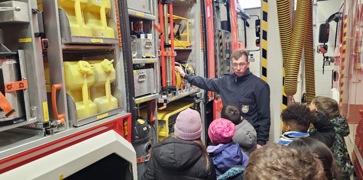 Die dritten Klassen besuchten im Winter die Freiwillige Feuer Fallersleben. Im Sachunterricht hatten sie schon viel zum Thema „Feuer und Feuerwehr“ gelernt. Nun konnten sie ihr Wissen testen und haben viel Neues gelernt.