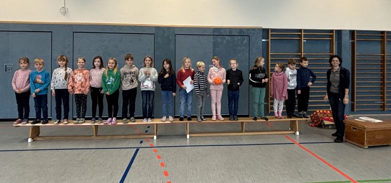 Am Ende der Aktion besuchte uns Frau Meisner vom Kreissportbund, um den Kindern Urkunden und Klassenspielzeug zu überreichen. Da war die Freude groß!