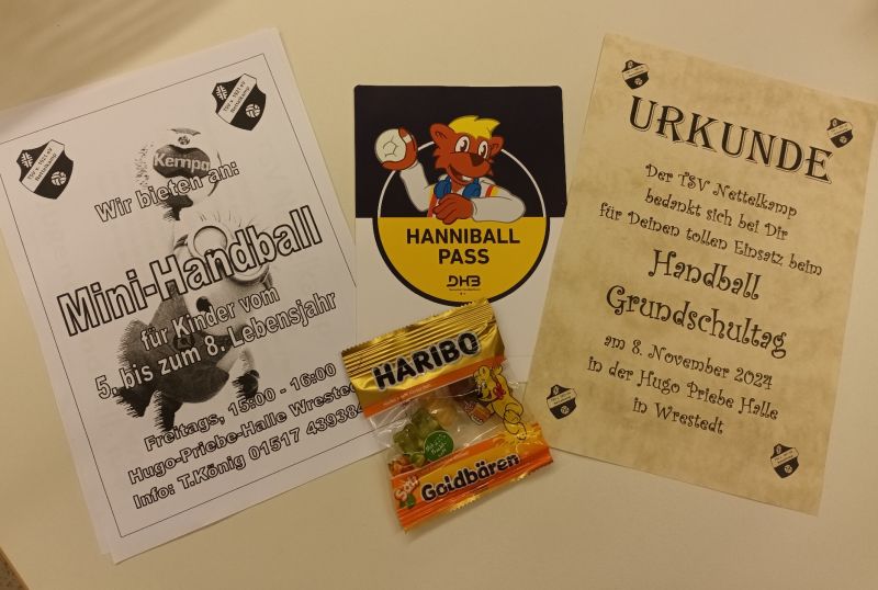 Im Rahmen des Grundschulaktionstages kam am Freitag, den 08.11.2024 ein sehr engagiertes Trainerteam vom TSV Nettelkamp an unsere Schule. In der Hugo-Priebe-Halle durften die Jahrgänge 2 bis 4 den Handballsport kennen lernen und mit viel Spaß trainieren. Alles war vom Trainerteam toll vorbereitet und organisiert worden, sodass die Kinder eine willkommene und kurzweilige Abwechslung vom Unterricht erleben konnten.