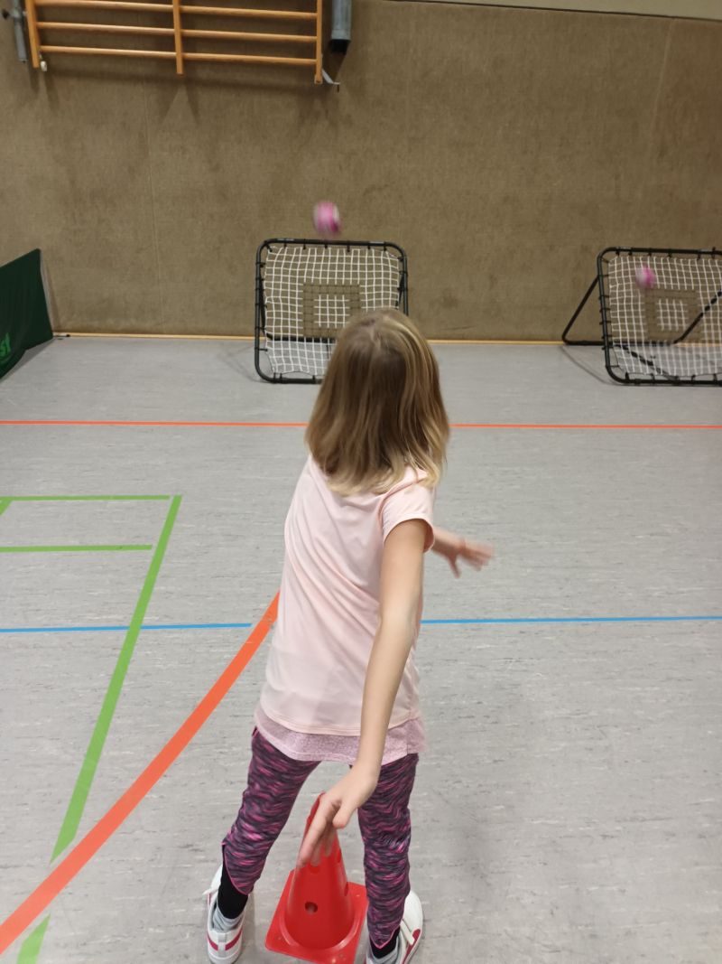 Die Schülerinnen und Schüler gingen mit einem Laufzettel von Station zu Station, um Punkte zu sammeln. Mit abwechslungsreichen Übungen wurden verschiedene Wurftechniken und die Geschicklichkeit im Umgang mit dem Ball trainiert.