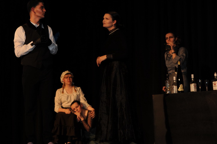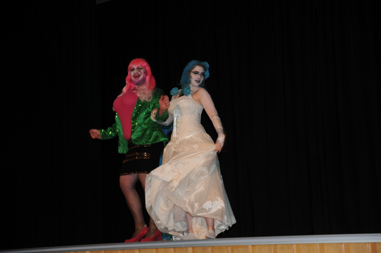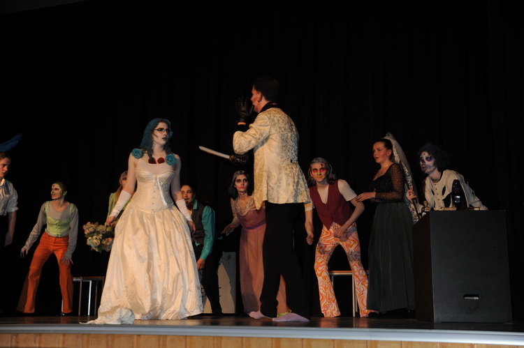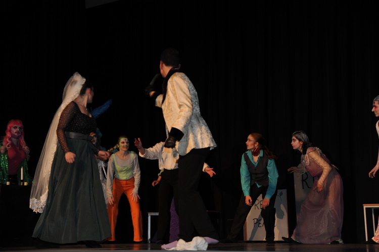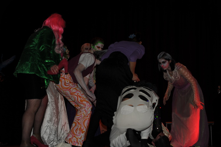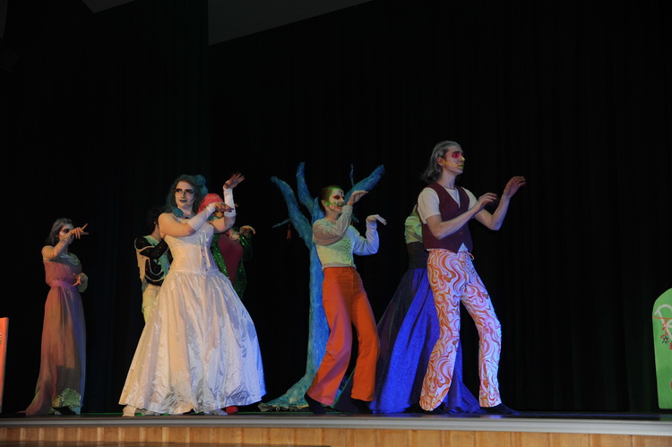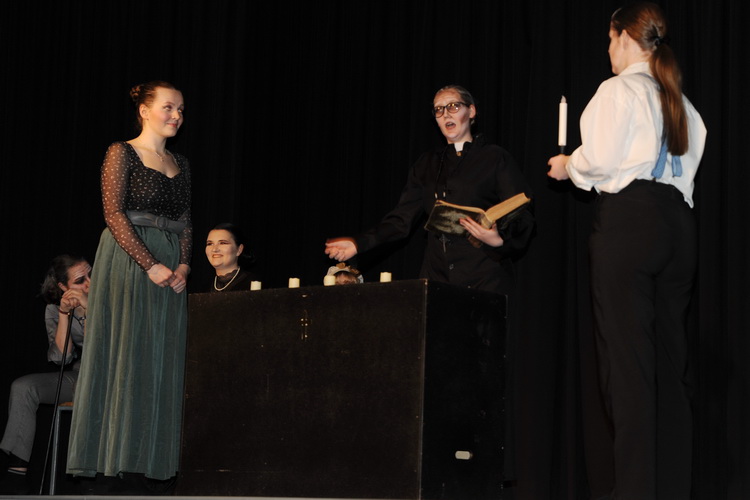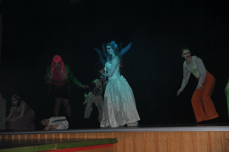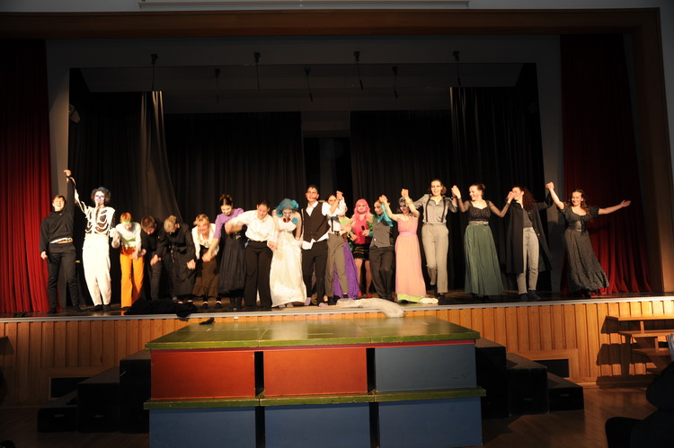 Letztgenannter erfuhr durch die Produktion der Aufführung auch bei den Akteur:innen der Oberstufen-Theater-AG eine Förderung: Man sah es den Nachwuchsschauspieler:innen an, dass sie mit Freude bei der Sache waren und ihre Botschaften aus dem Brustton der Überzeugung heraus vortrugen. Die starken Einzelleistungen der 20 Mitglieder des von den Lehrkräften K. Kussin und C. Möller betreuten Bühnenpersonals wurden von der Beleuchtung durch die Technik-AG und den gestalterischen Rahmen, den die Bühnenbild- und Maske-AGs beigesteuert hatten, bestens in schaurig-schöne Szenen gesetzt.