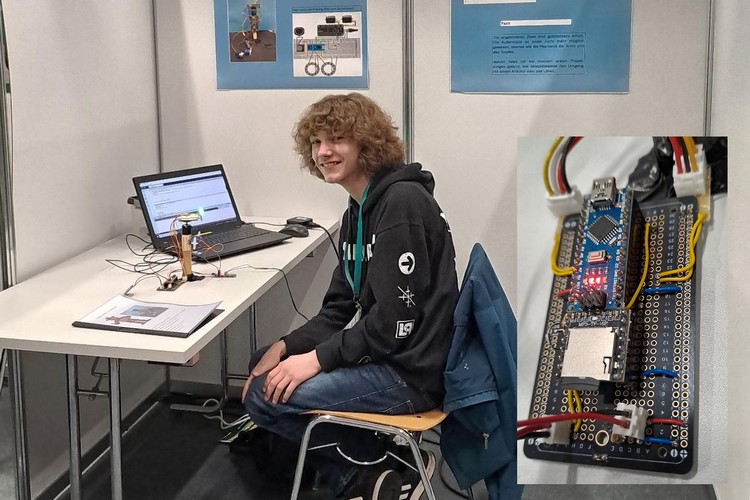 Inspiriert von einem Computerspiel hat Jakob S. eine eigene Animatronic-Figur entwickelt. Mithilfe eines selbstgeschriebenen Arduino-Programmes kann der Aufbau auf die Umgebungshelligkeit reagieren und passende Geräusche abspielen. Zwei LED-Ringe simulieren die Augen der Figur, die in verschiedenen Szenarien unterschiedlich leuchten. „Ich habe bei meinem ersten Projekt einiges gelernt, wie beispielsweise den Umgang mit einem Arduino oder das Löten.“, resümierte der Jugendliche. Er erhielt für sein Projekt „Selbstbau einer Animatronic-Figur“ den zweiten Platz im Fachgebiet „Technik“.