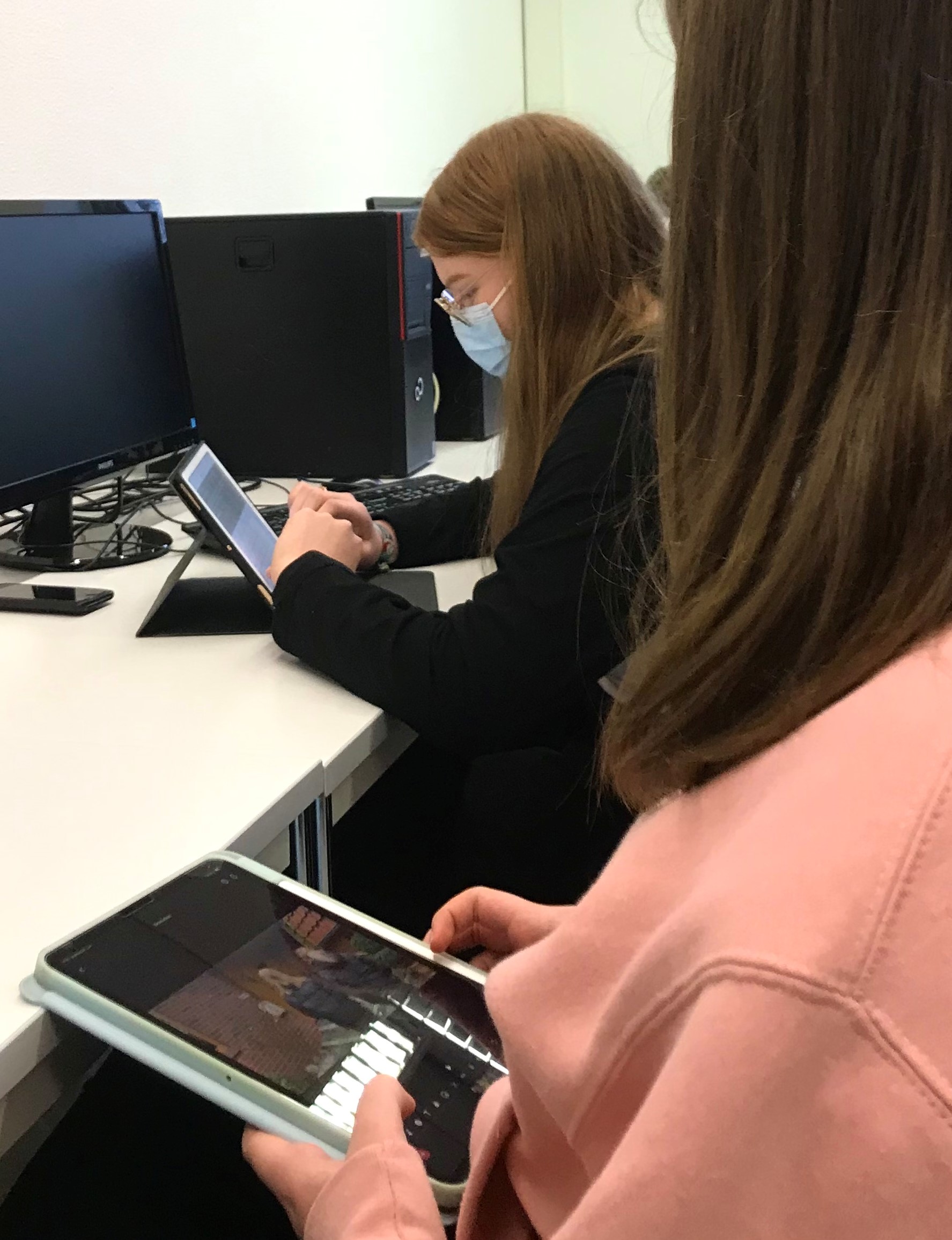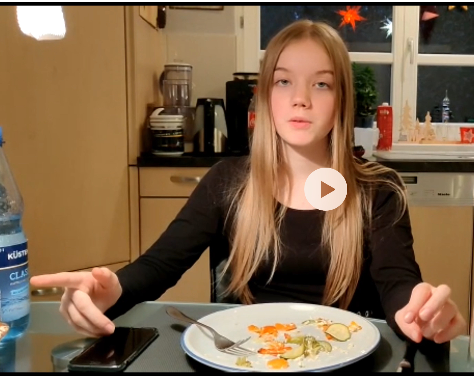 Was genau ist eigentlich ein „Unverpacktladen“? Wie schmeckt eine vegetarische italienische Gemüsesuppe? Gibt es an unserem Gymnasium viele Vegetarier und was ist eigentlich ein Veggie-Day? Mit der Themenvorgabe „Dinner for future“ tauchten viele Fragen auf. Die Nachwuchsjournalisten aus dem achten Jahrgang stürzten sich mit Feuereifer in die Recherche. Sie einigten sich in Kleingruppen auf einen Schwerpunkt, verteilten Aufgaben und halfen sich gegenseitig beim Auswählen und Schneiden der Bild- und Tonsequenzen. „Einige Schüler haben großes Talent sowohl vor als auch hinter der Kamera gezeigt“, erzählt Frau Westerkamp. So eine große Projektarbeit sei wie eine Wundertüte, es sei spannend gewesen, zu sehen, wie sich die einzelnen Filme und Podcasts entwickelten. Natürlich gab es auch Phasen, in denen der Frust groß war, wenn z.B. ein Interviewpartner nicht mit der Aufzeichnung des Tons einverstanden war, ein Gruppenmitglied in Quarantäne war oder das W-LAN mal nicht optimal funktionierte. „Improvisationstalent und Geduld gehören auch dazu“, so die Kursleiterin, „am Ende waren wir alle sehr zufrieden mit den Beiträgen. Auch wenn es keinen Preis von der Landesjury geben sollte, haben die Schüler viel an Alltagswissen und Erfahrung gewonnen und so eine Menge aus dem Projekt mitgenommen.“