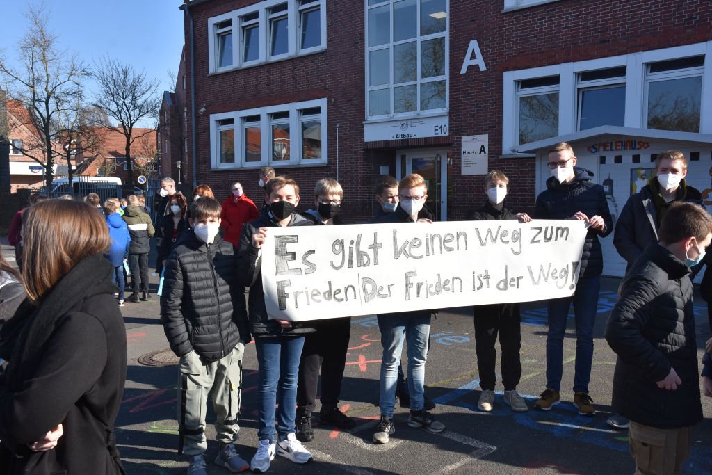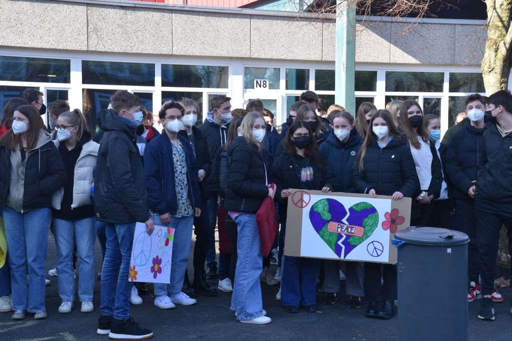 Deswegen war es uns wichtig, möglichst schnell und kurzfristig den Schüler:innen die Möglichkeit zu geben, sich zu informieren. Zudem wollten wir eine Friedensaktion planen als Zeichen für Zusammenhalt und Solidarität mit den Opfern. Wir wollten ein Zeichen setzen, damit jeder die Ernsthaftigkeit dieser Situation und die Absurdität von Kriegen begreift.
